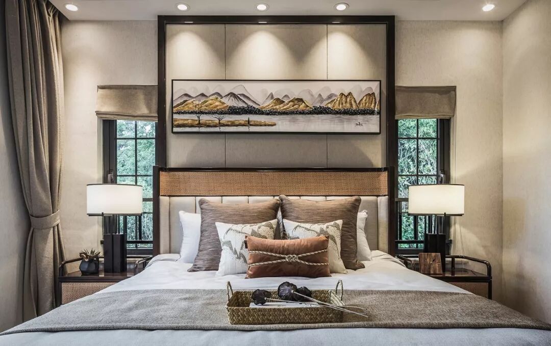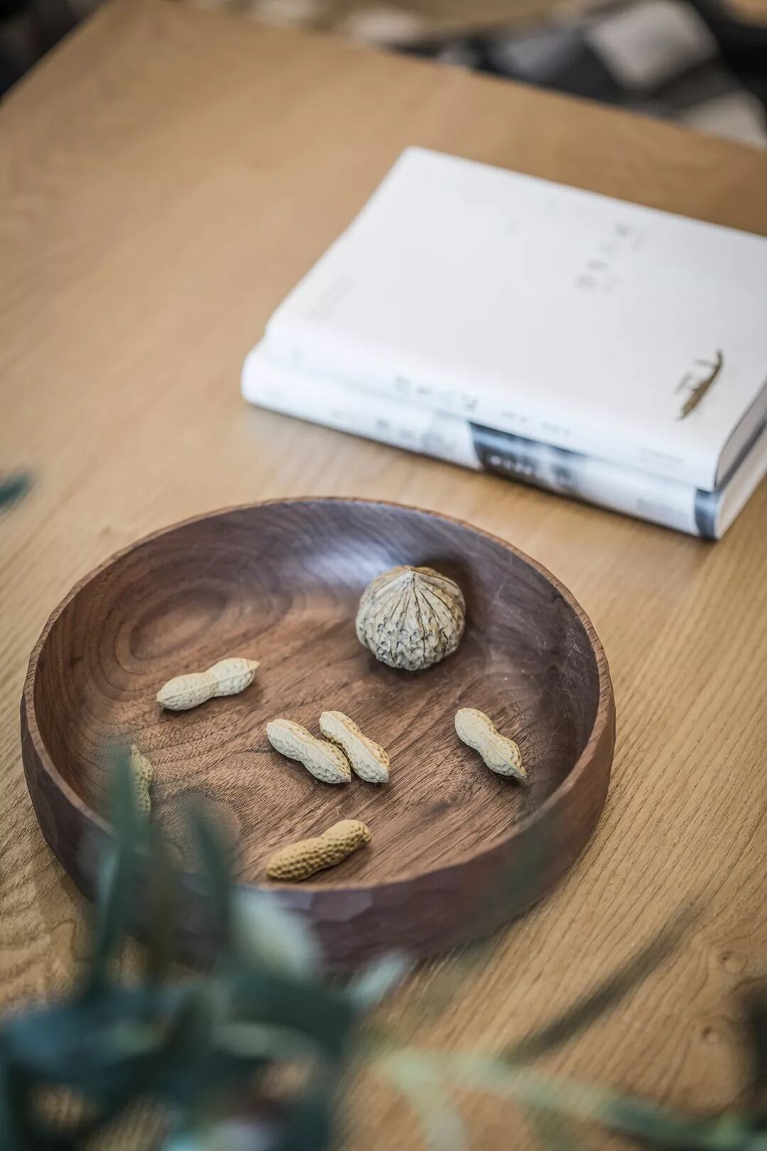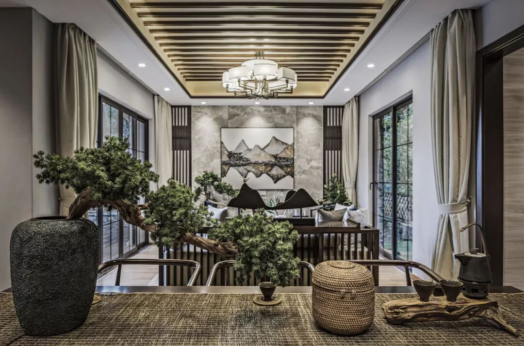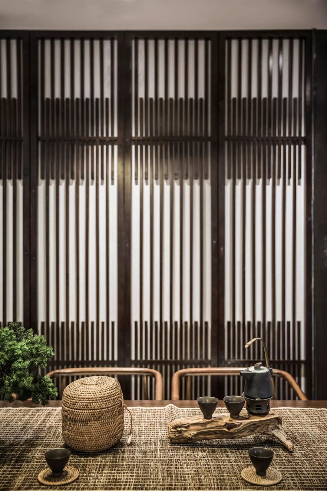 硬装布局以“开放、包容”的生活态度为至上,不止客厅设计左右双向门窗,开放式餐厅,也瞬间拉近了心理上的距离,传统的中式餐桌椅,搭配饱含东方韵味的圆形水墨画,以及编织感桌垫与摆件,人文墨客推杯换盏的隐居生活画面,悠然而惬意!