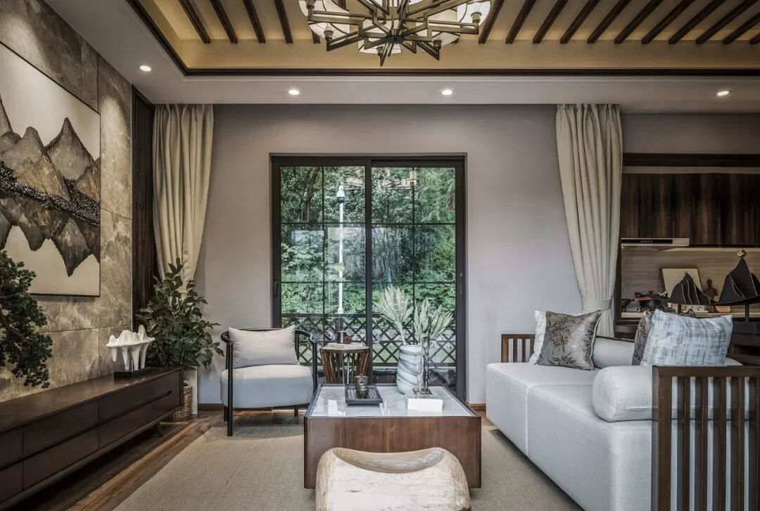 设计在传统的东方意境之上,透过简练的家具配饰及意境造景,营造雅净的人文禅境。客厅两面通透的玻璃门,将自然与空间亲昵串联,现代的精致与原生态的野性温柔对视,握手言欢!古朴的木质家具,素净的沙发、冷静的理石...让生活回落到本质的朴素、优雅且亲近。