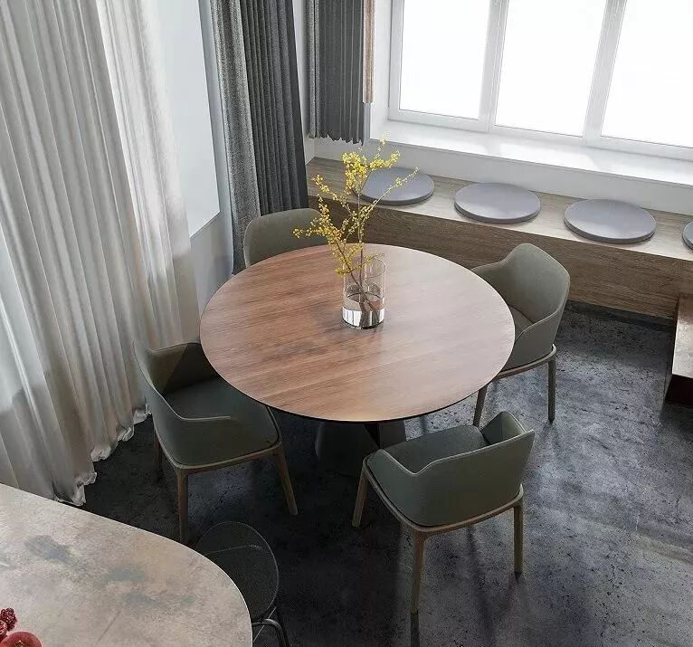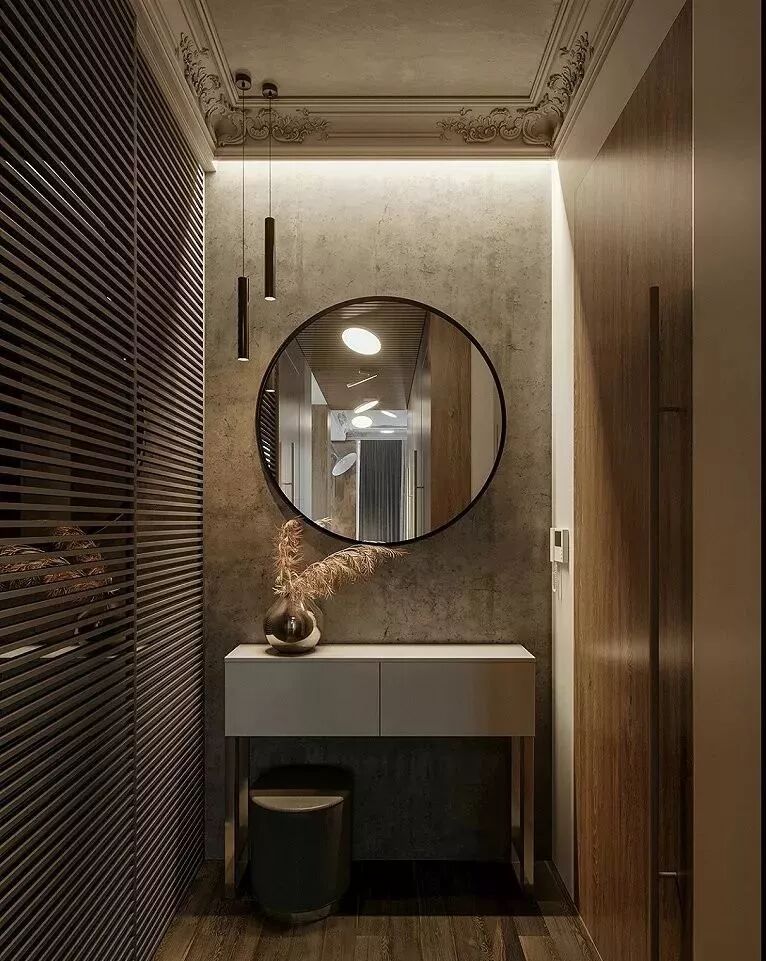 走进生活的浪漫,65.91m²简欧住宅设计,各种材质相互碰撞的一个设计,混凝土,仿清水混凝土,深色木地板,大理石,金属,皮质。用材料的多重变化代替色彩多样,以基础黑白灰为主,用棕色原木点亮整个空间。