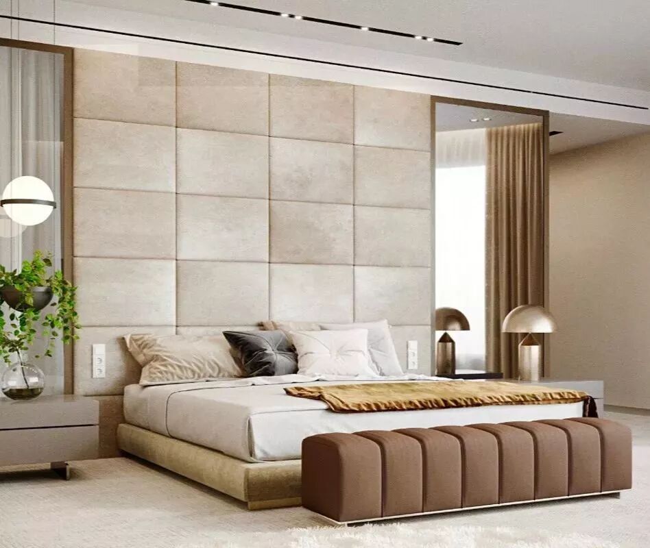 这样一款经过软包的墙头背景,
