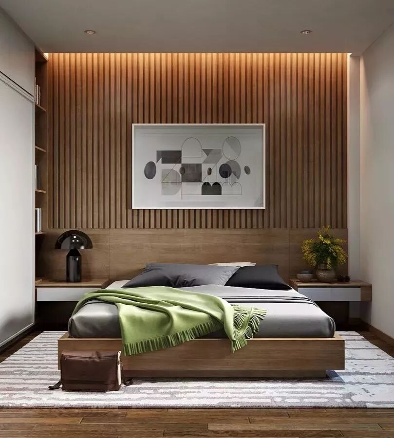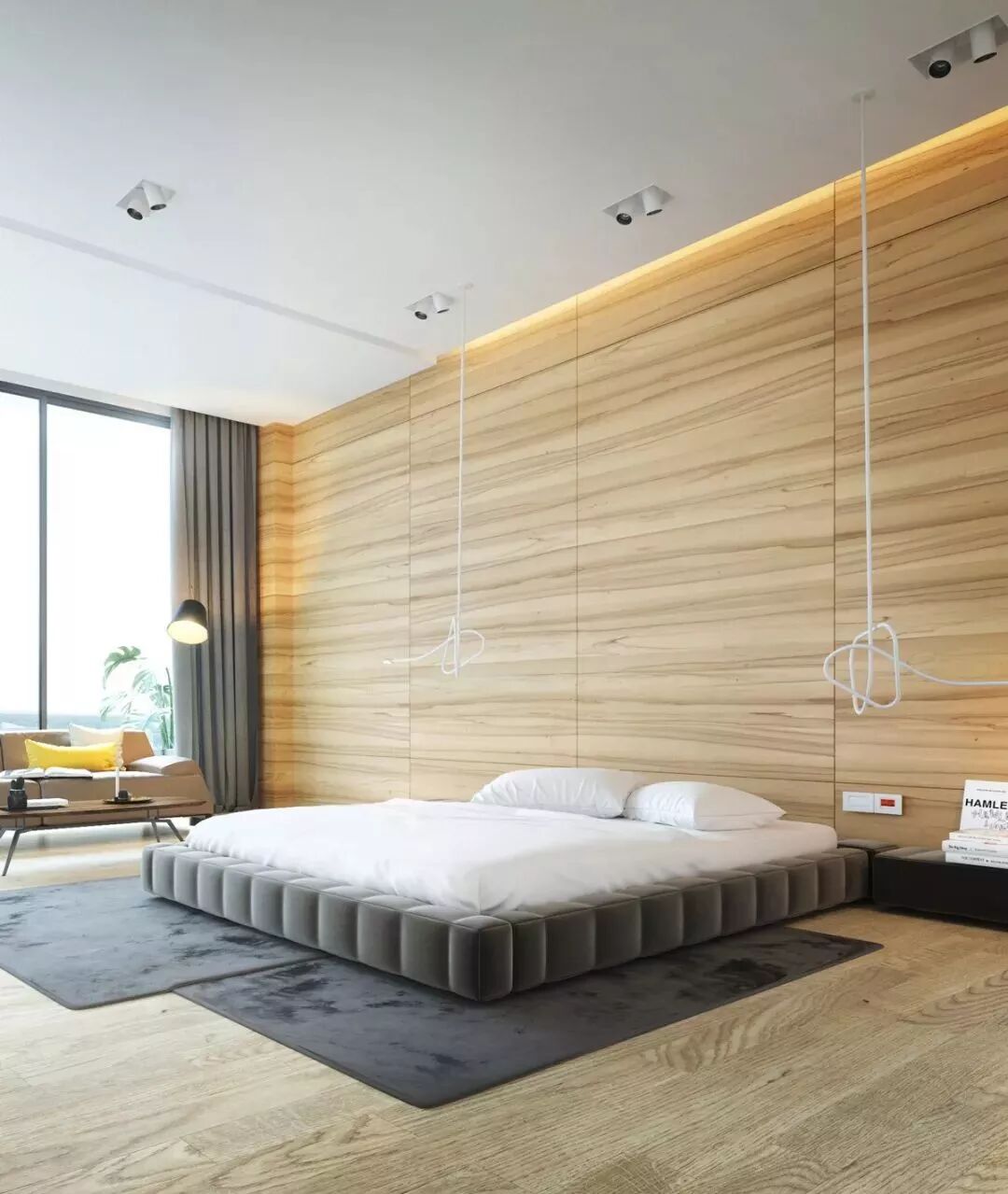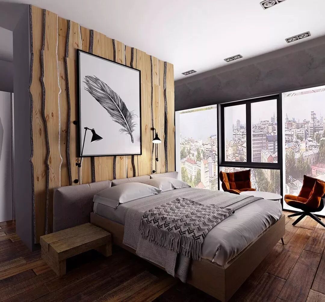 你甚至可以尝试在木饰面中间部分留白,
