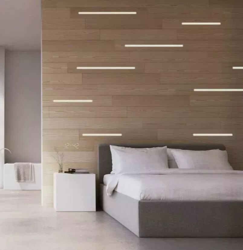 通过简单布置,可以将灯带藏在木饰面里,