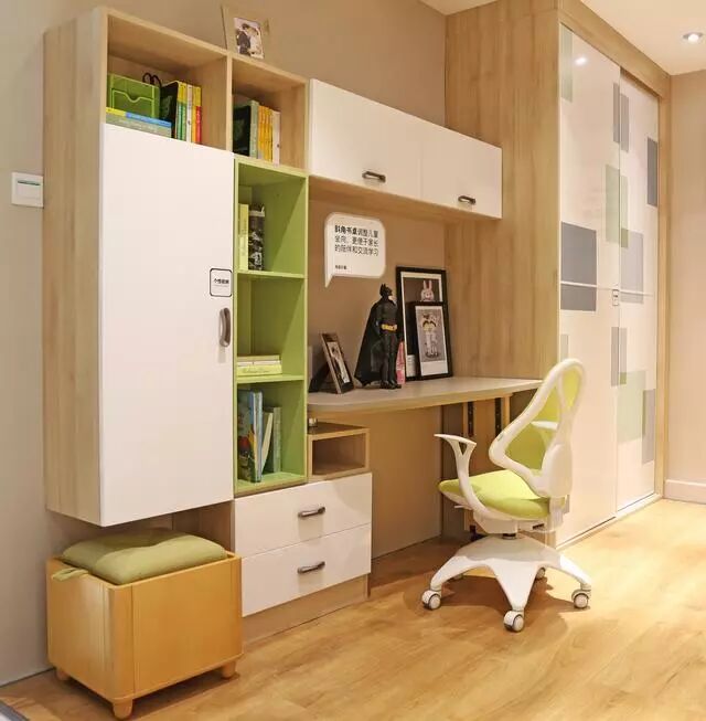 飘窗太小不好利用?书桌拼搭飘窗柜就不错,一来保证了孩子学习有足够的光线,二来这个转角位置也能得到充分的利用。