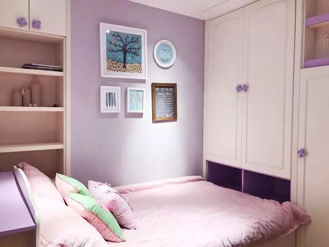在位置足够的情况下,将榻榻米与衣柜结合在一起能够更好的活用空间,床头还做了个收纳柜,摆上一个个孩子喜欢的玩偶,窝心的感觉便有了。