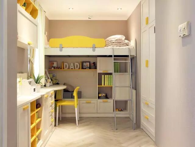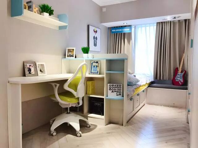 如何在一个小空间同时满足孩子学习、休息、玩乐的需求?答案是上下床,上床休息,下方便是孩子的玩乐区,垂直空间得到很好的利用。