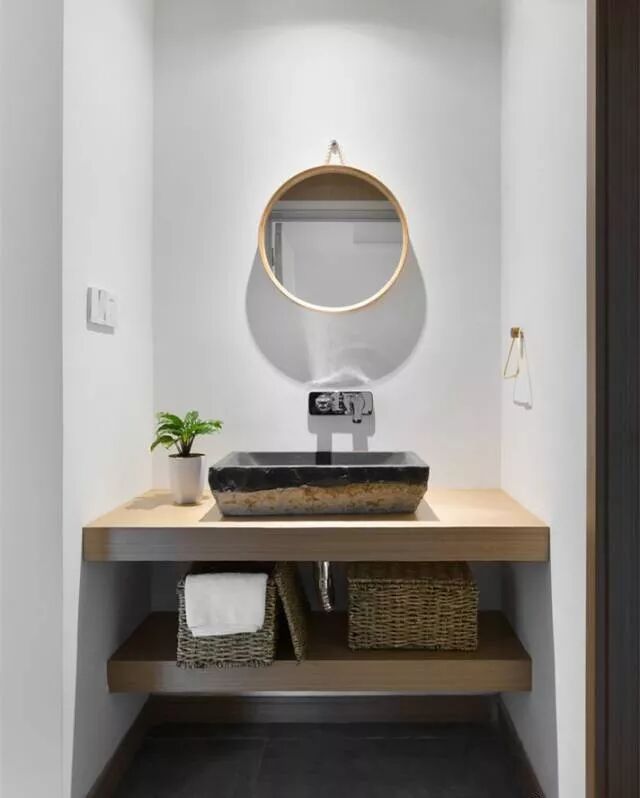 很多家庭受户型的限制和个人的喜好,将洗手台隔断出来做成独立洗手台,独立出来的洗手台一般在客厅能直接看到,所以设计要求也就较高,小编整理一组实景设计图,有这个设计想法的朋友可以参考~