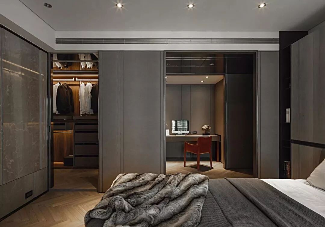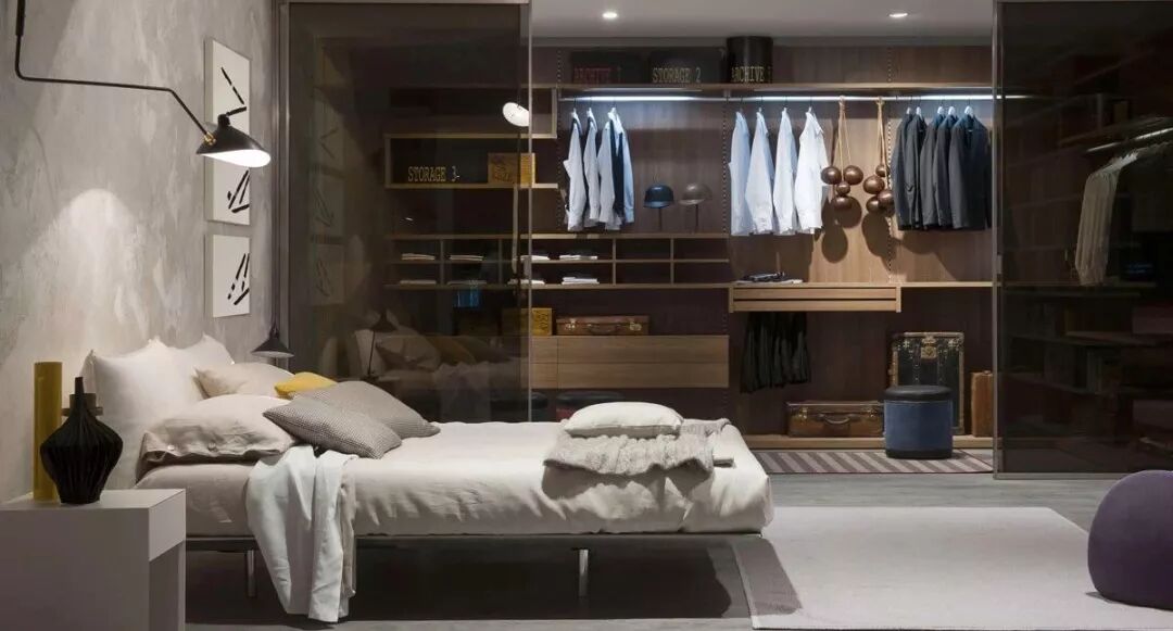 在我们的固有思维里,衣柜一般都是封闭式的,采用刷漆的柜门将所有衣物遮挡起来,达到与室内风格和谐、统一的视觉效果。