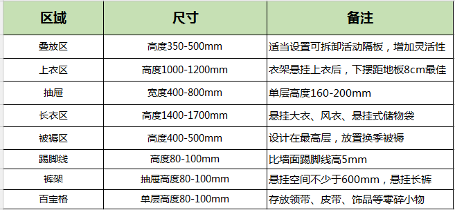 定制衣柜的黄金尺寸