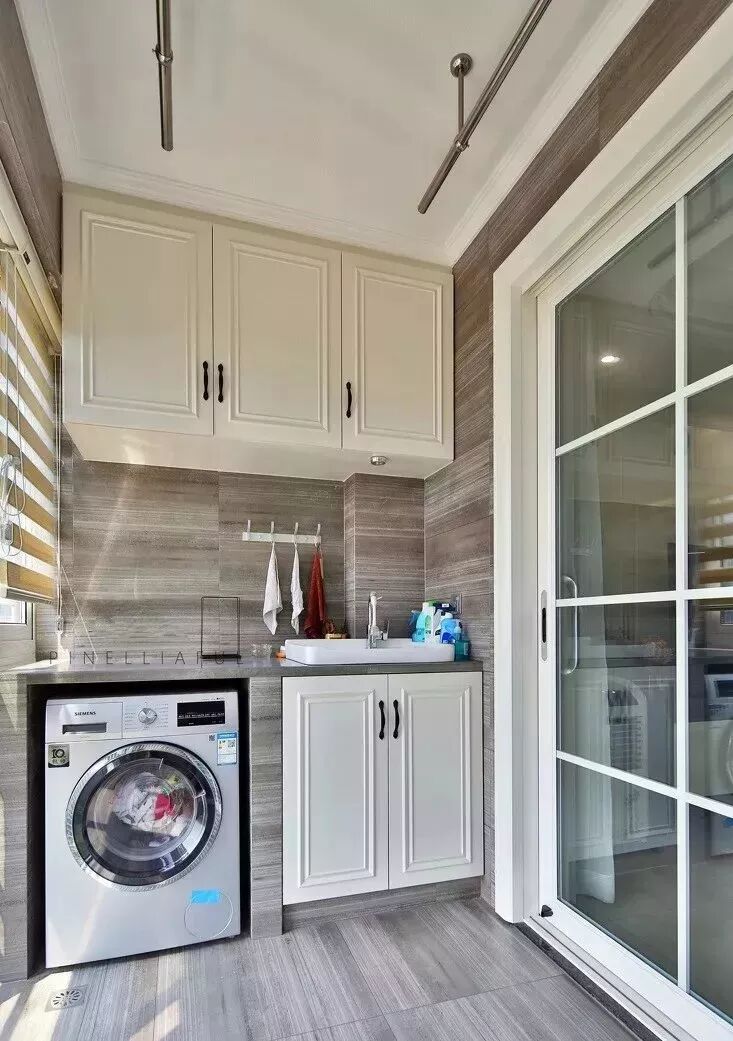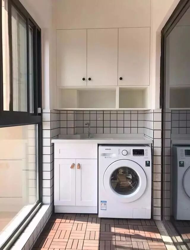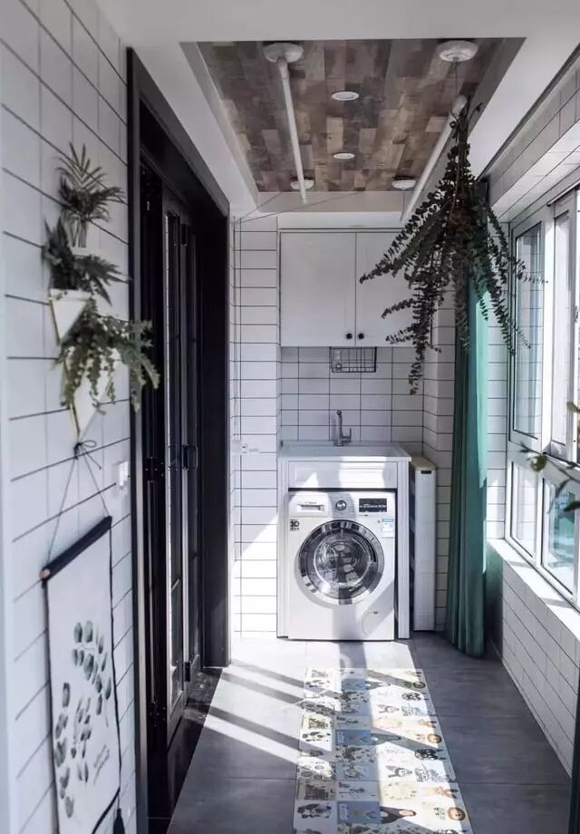 想要提高阳台的颜值,最主要的就是搭配,把墙地面、洗手台、柜子和吊顶都完美的集合起来,自然颜值就高了。