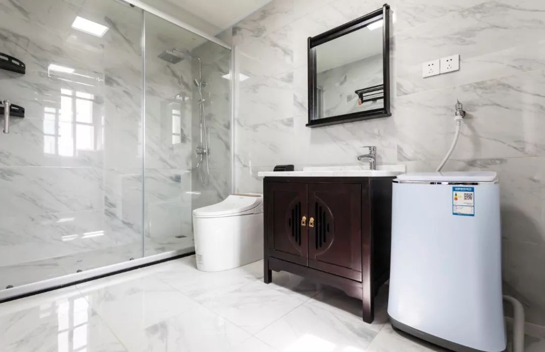 无论是如何摆放,考虑到卫生间面积较小,如果打算在这里放洗衣机的话,记得要提前确定好洗衣机的尺寸再做设计布线,避免后期放不进去的尴尬。