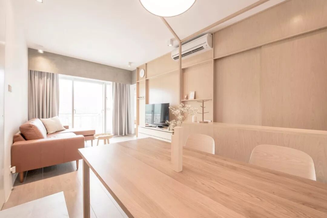 本案是香港的公寓设计,在这寸土寸金的香港,90㎡的房子说大不大,说小不小,但若是隔出2室2卫就有些紧凑了。