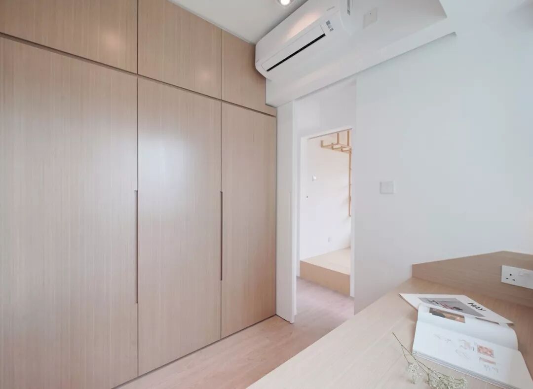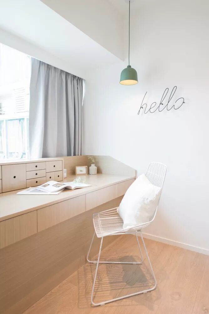 在90㎡ 中已经有了2室2卫1厨的基础上,设计师还单独开辟了一个角落空间, 一面用于衣柜收纳、一面用于工作,真正做到了物尽其用。