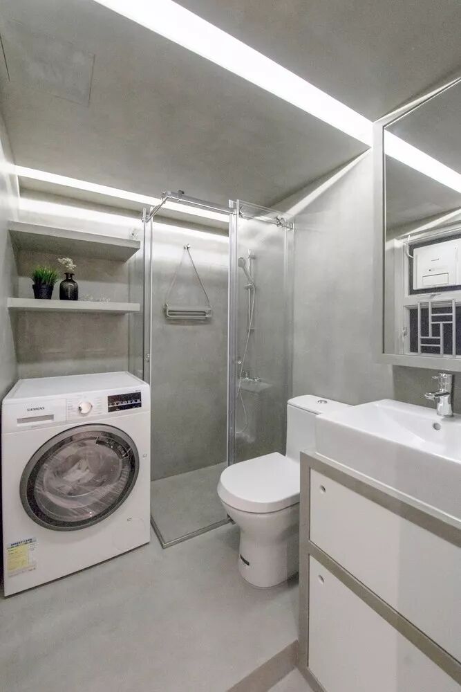 全空间、大面积的水泥装饰面让卫生间看起来更加简洁利落,几乎没有冗余的部分;