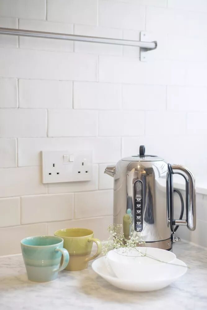 厨房沿袭了房屋整体的设计理念,干净、整洁、简约,雪白瓷砖和原木色橱柜真是百看不厌。