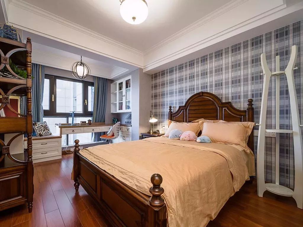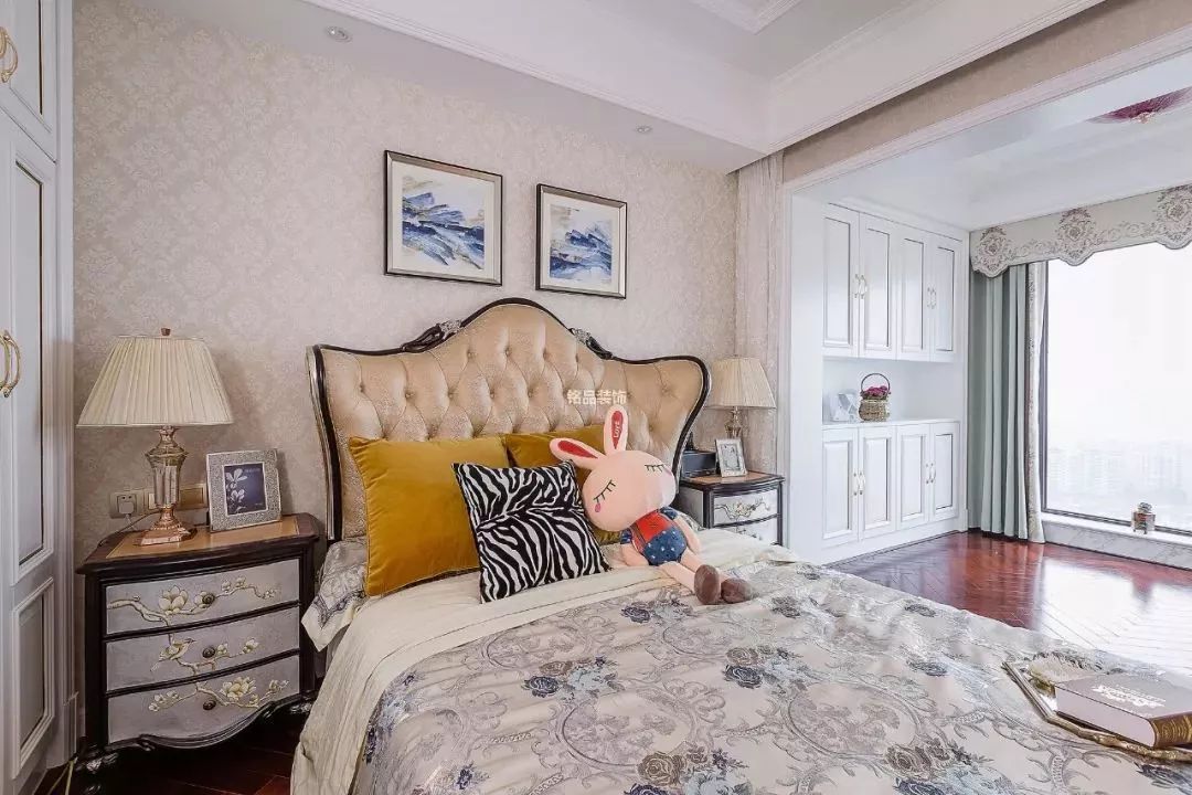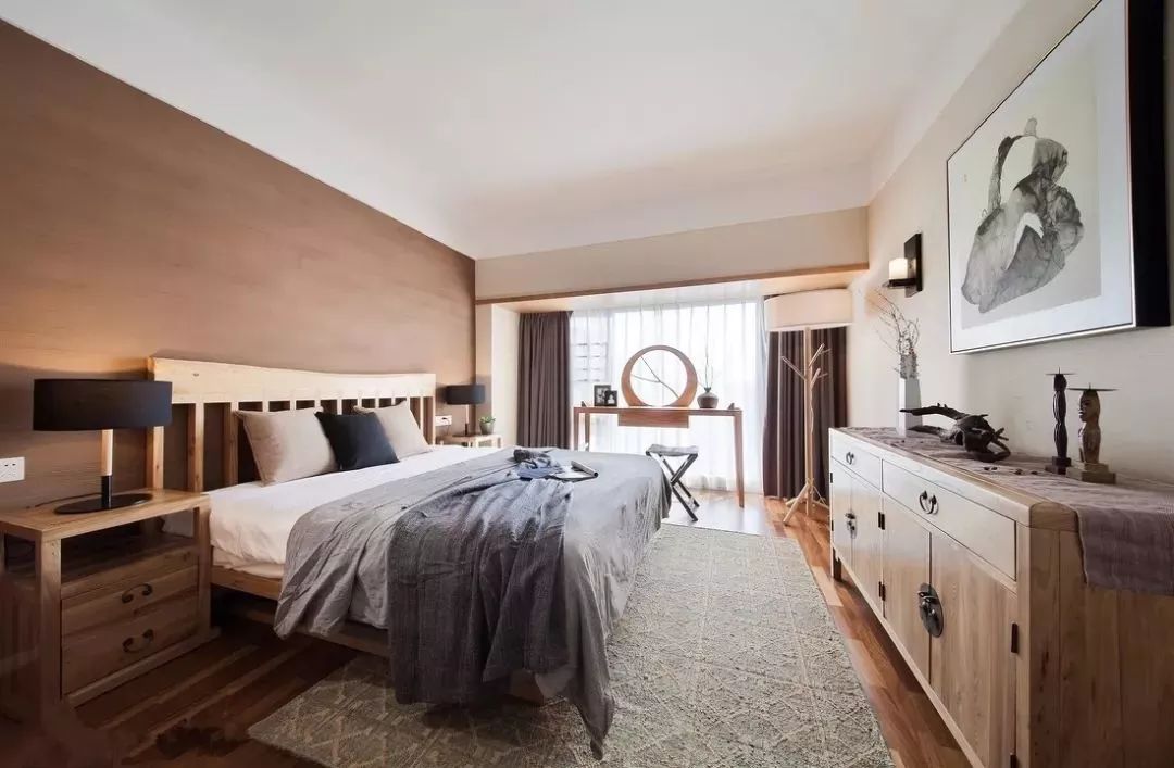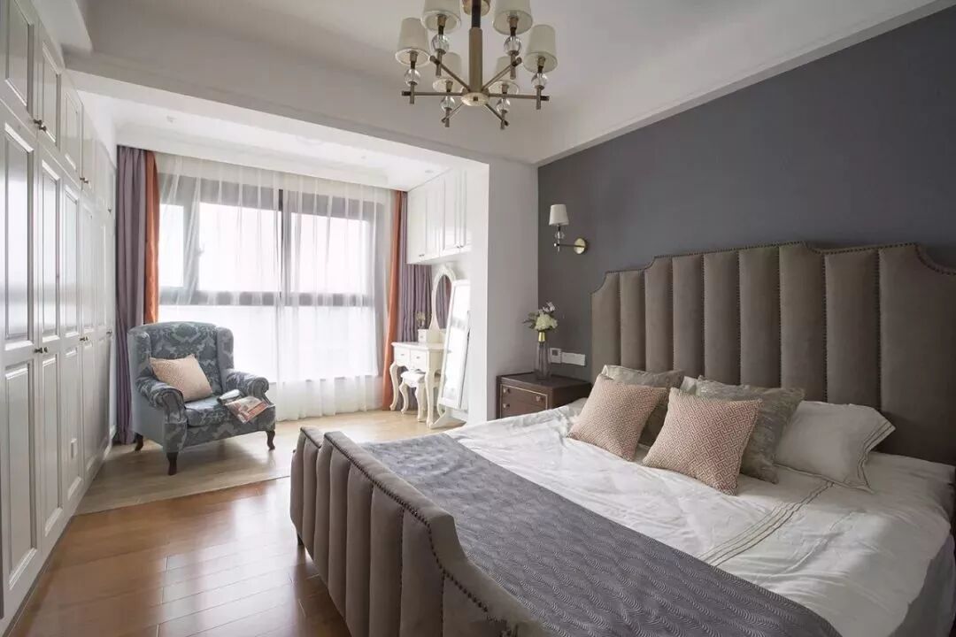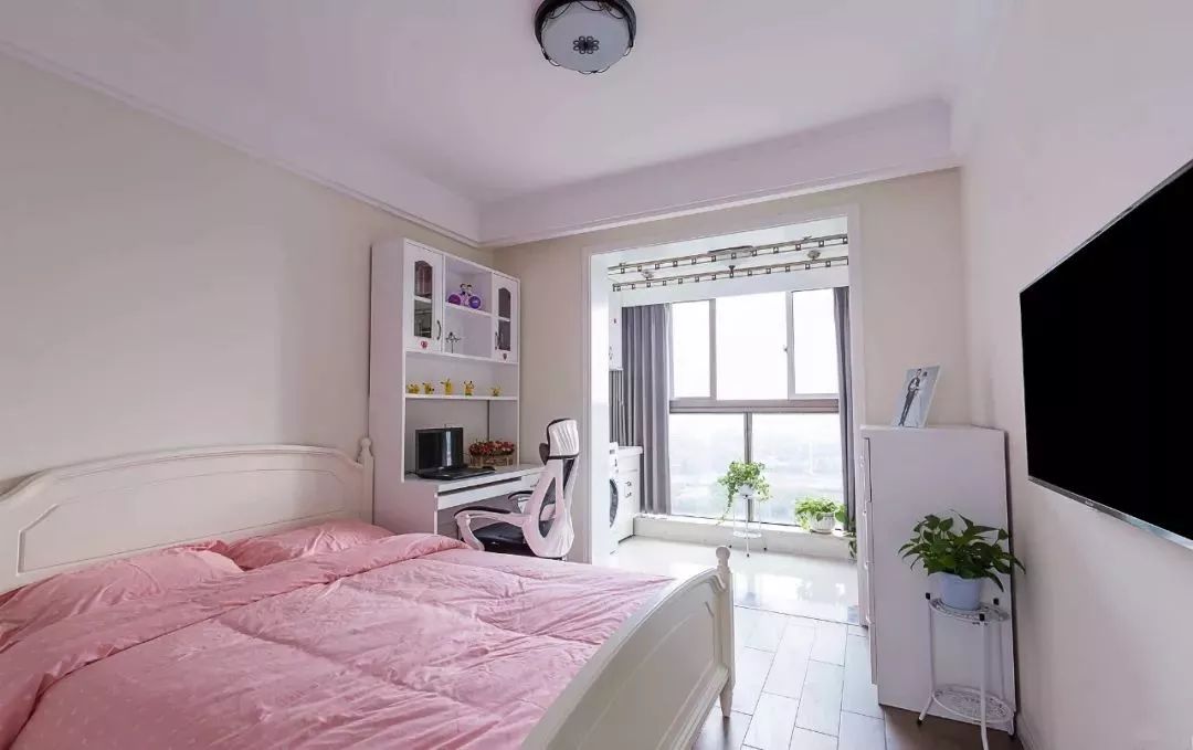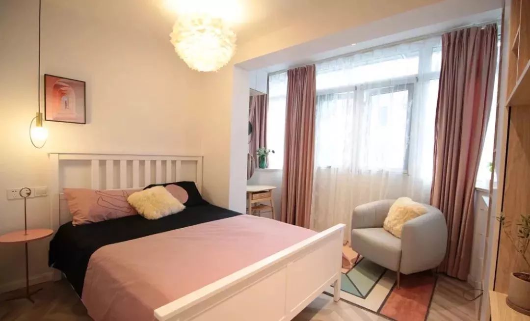 床头床尾腾空出来作他用,把女主人的梳妆台放到阳台一侧,化妆的时候更加明亮,心情都显得好漂亮。