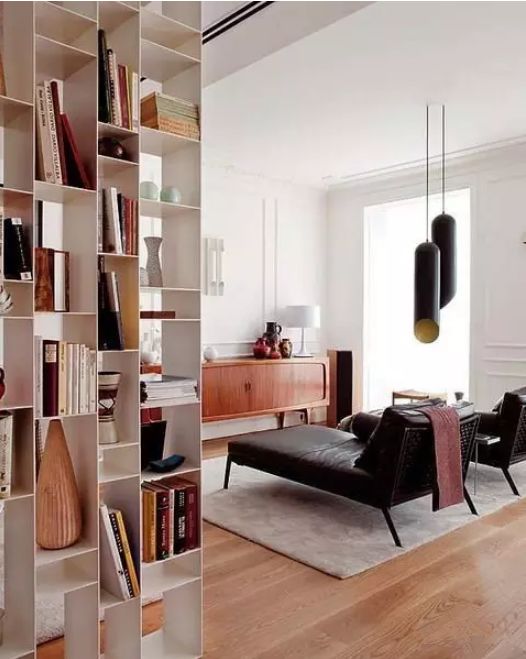 用柜子代替墙体做某些空间的隔断,分隔空间的同时实现储物功能,也是不错的做法。