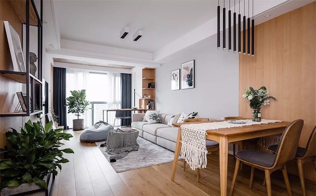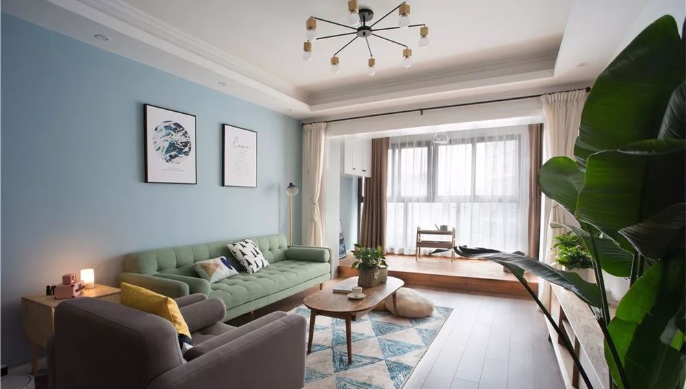 如果客厅在布置家具方面已经足够了,打通阳台后可以把阳台布置上绿植与休闲椅,把这个区域结合客厅设计成一个清新惬意的休闲区,同时还能纳入客厅的功能。