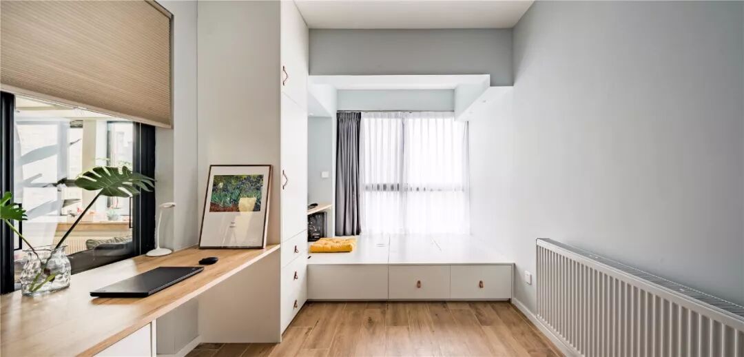 ▲在书桌与衣柜的基础,靠窗装上榻榻米床,也让小房子还能多出一个小卧室,以备以后有孩子时所需。