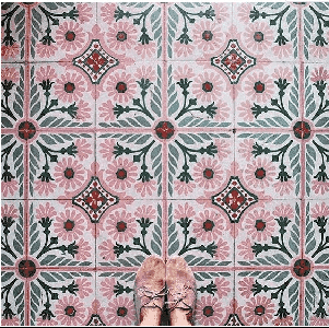 如果你觉得一般的瓷砖平庸,想要有情调一点,可能连地砖的花样都要选的不一样一些。比如小花砖,某宝搜关键词“复古花砖”就能找到很多。