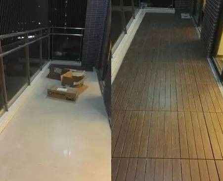 防腐木的运用比地砖更为广泛一点,毕竟不需要请专业的工人,自己就能搞定了。不管你是新房阳台还没处理,还是旧房子想要改造得更美。防腐木基本都能帮你解决问题。