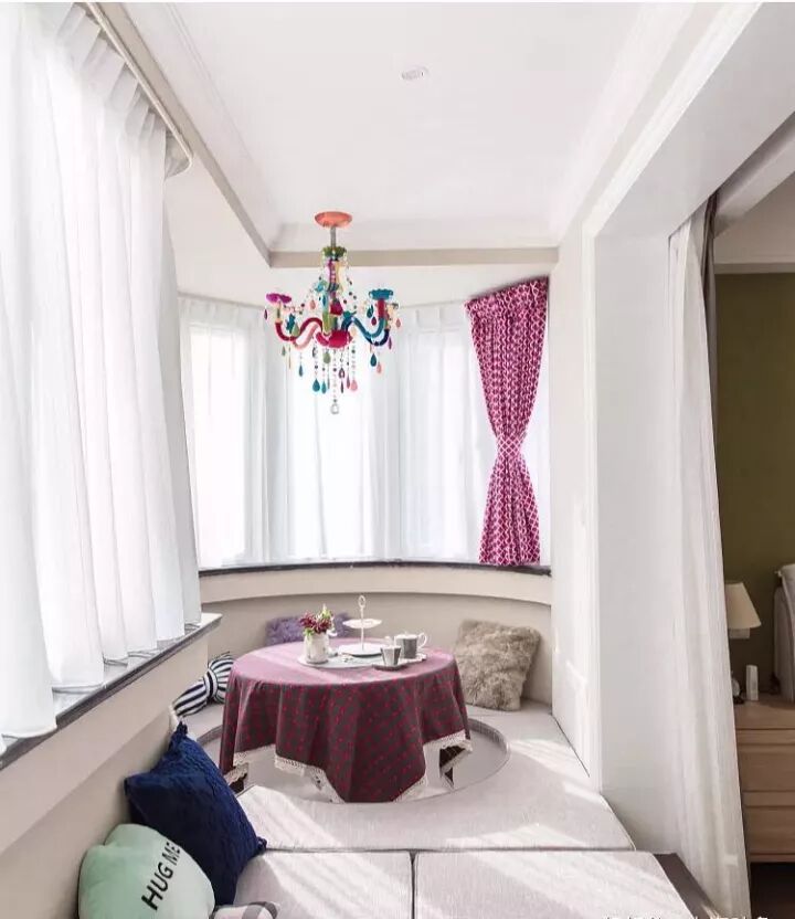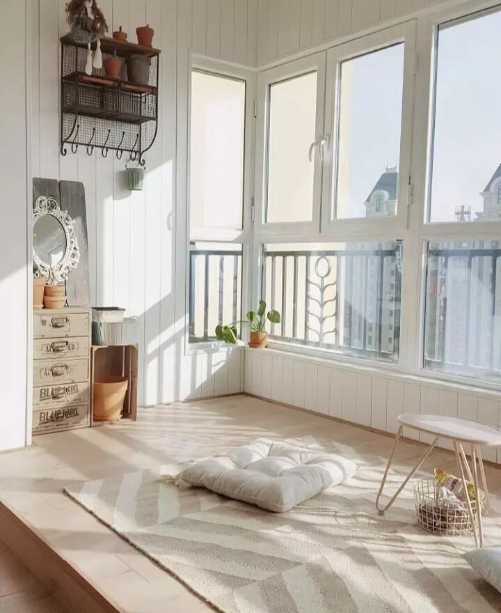你可以像布置客厅一样去布置内阳台,铺上地毯、摆上懒人沙发。