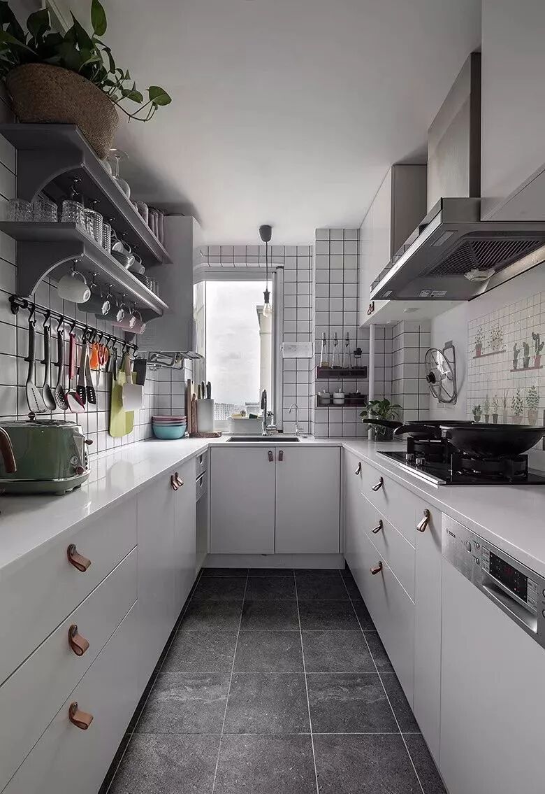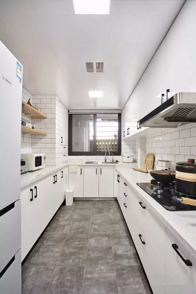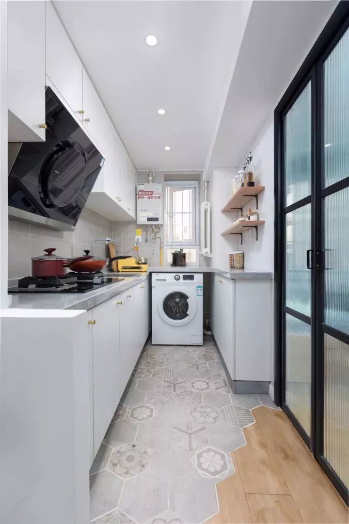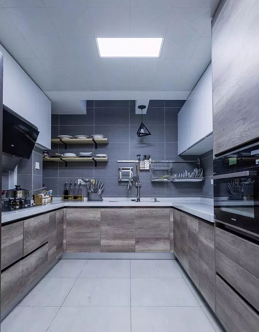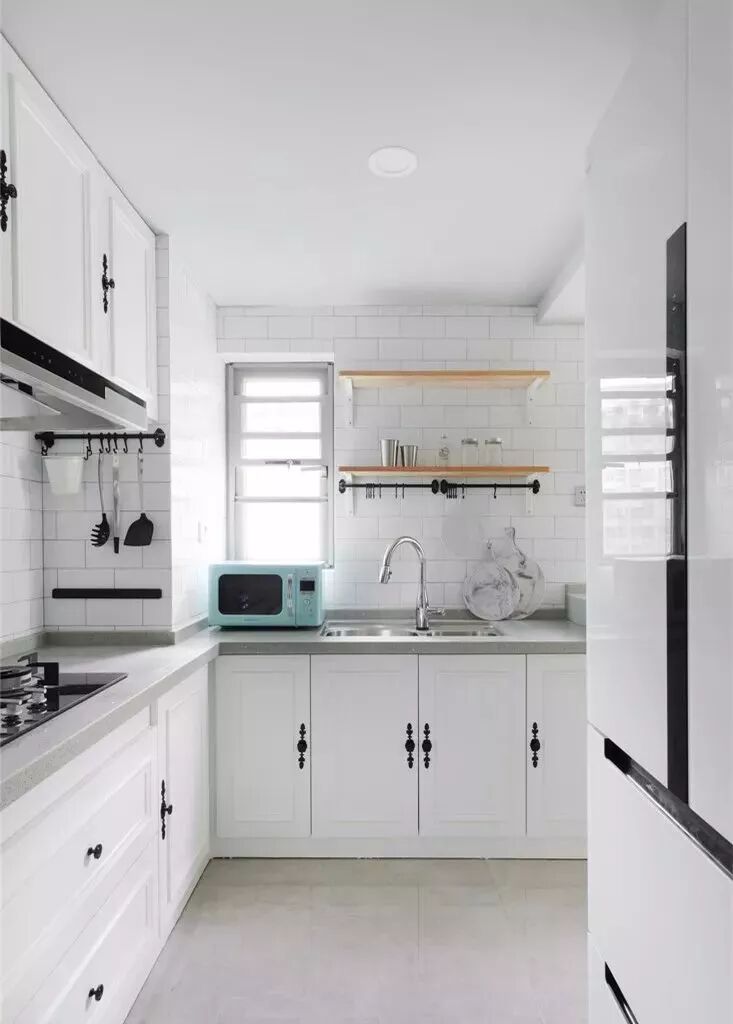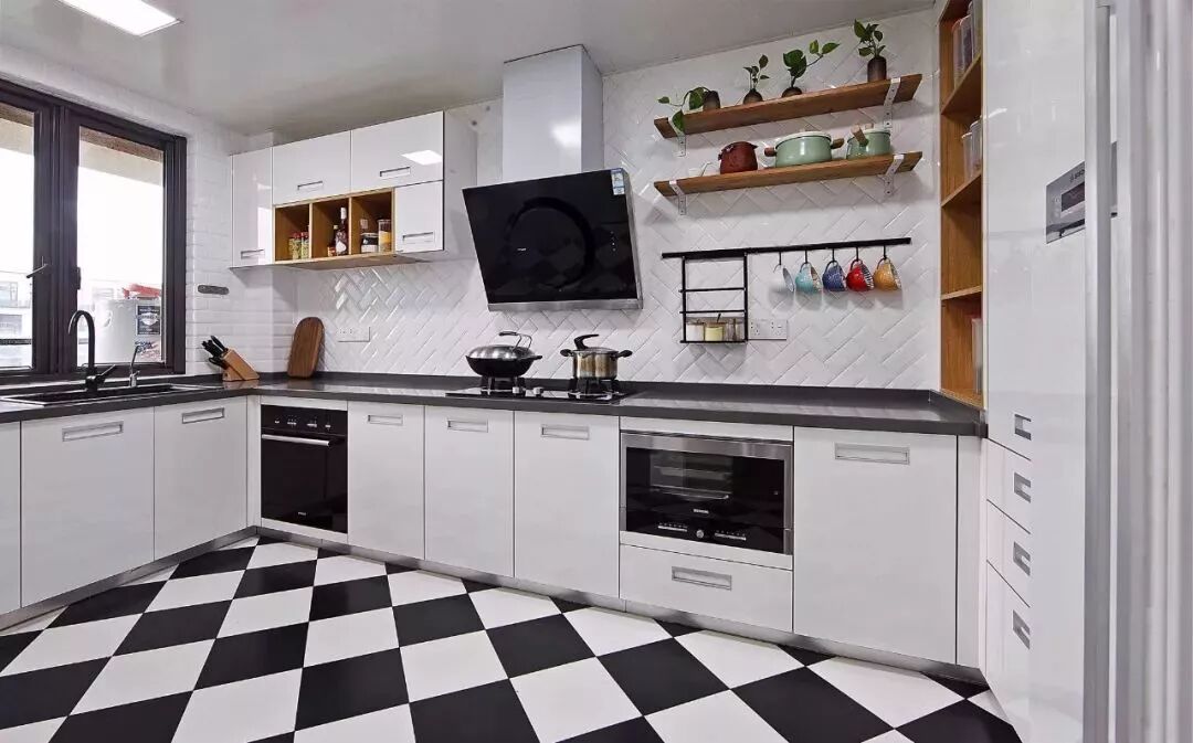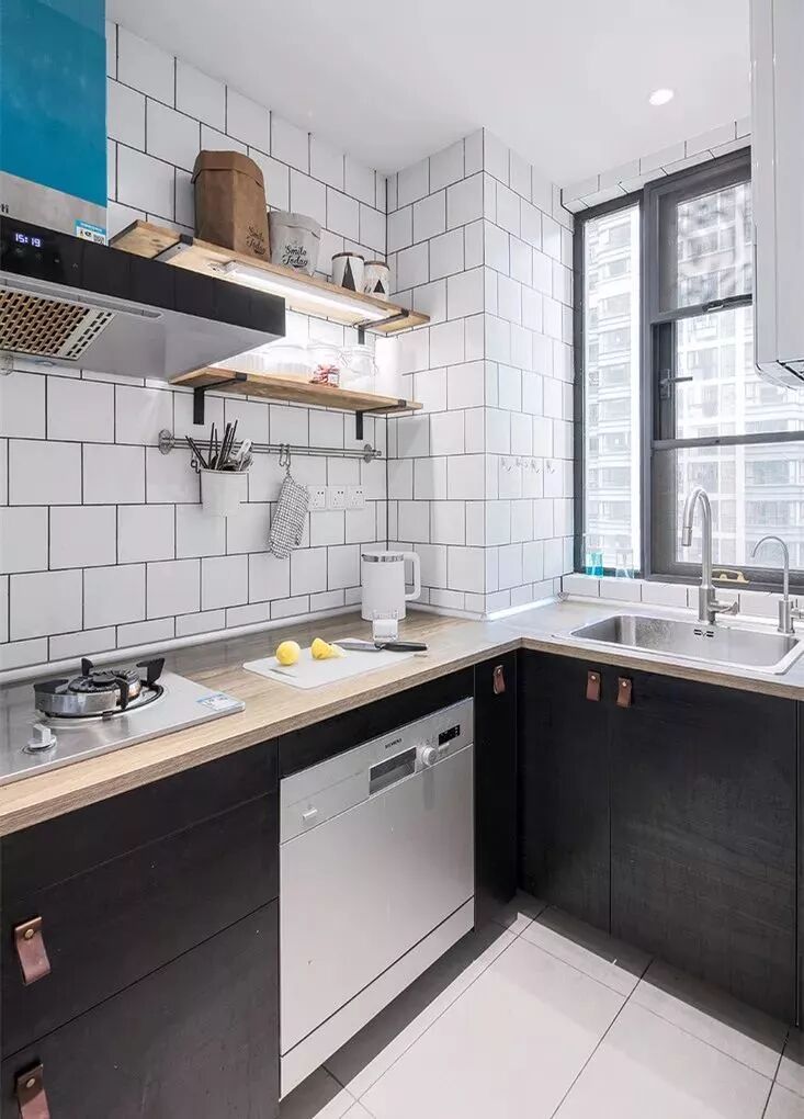 相对而言,装层板的造价要比做吊柜便宜很多,如果厨房里面有较多常用的调味料等瓶瓶罐罐的,那么做几个层板真的是会实用很多!你看这样设计的厨房,实用吗?
