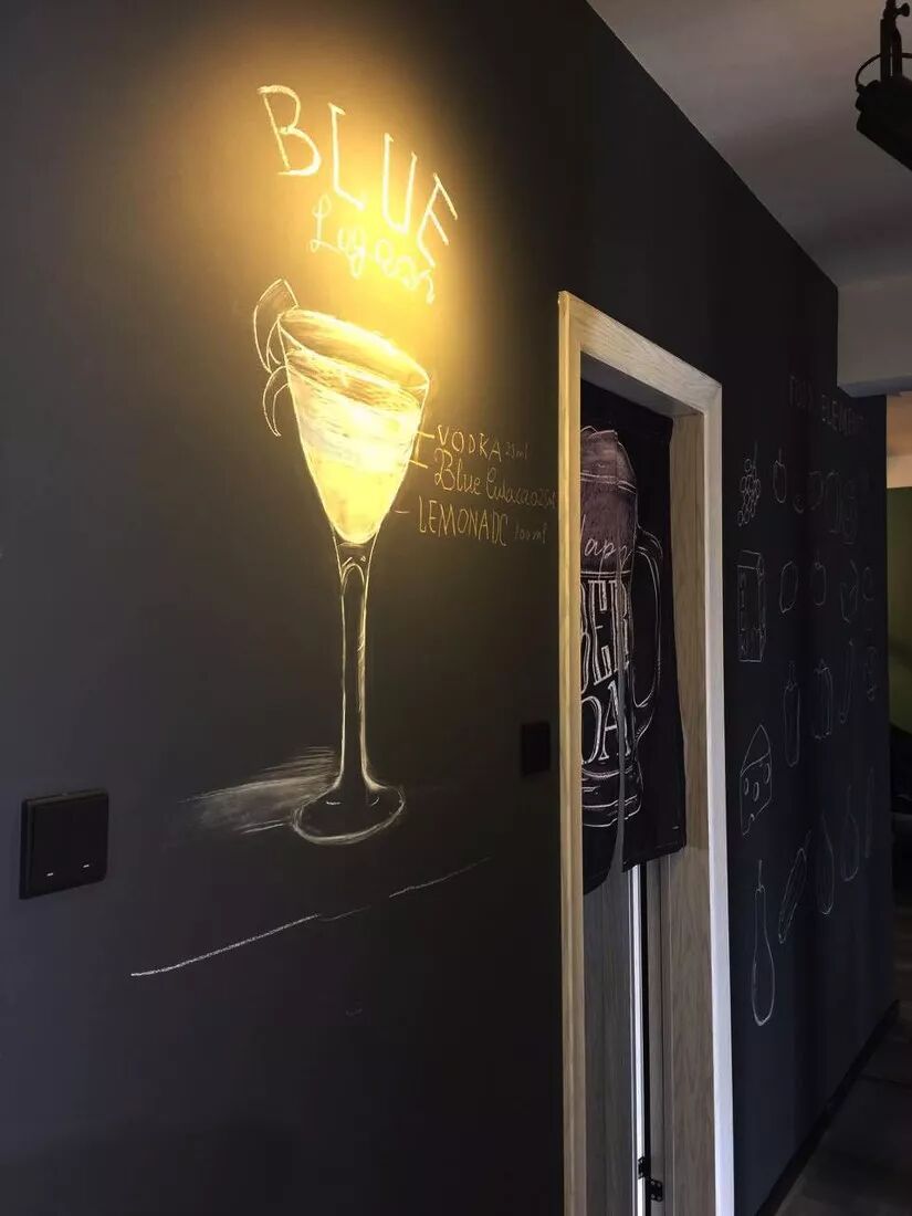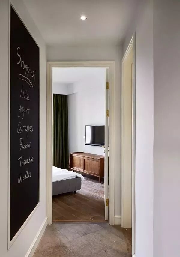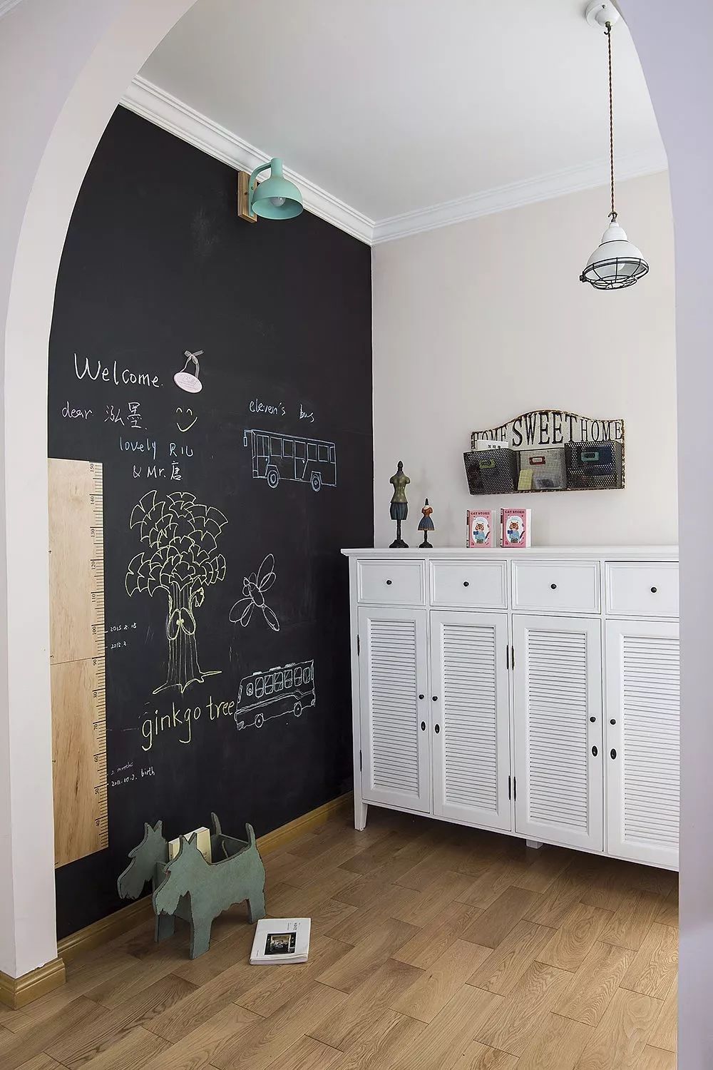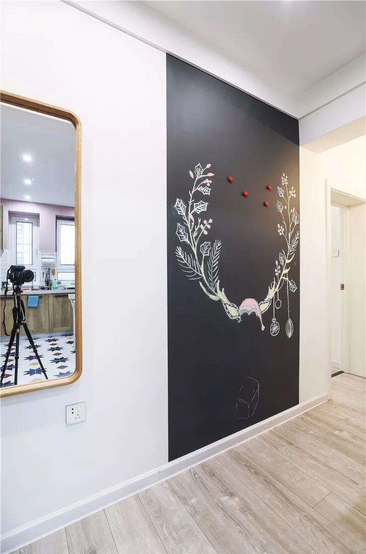 如果家有宝宝,就给他做一面小黑板墙。写写画画,丰富孩子的生活,也避免了孩子在别的墙面乱写乱画。