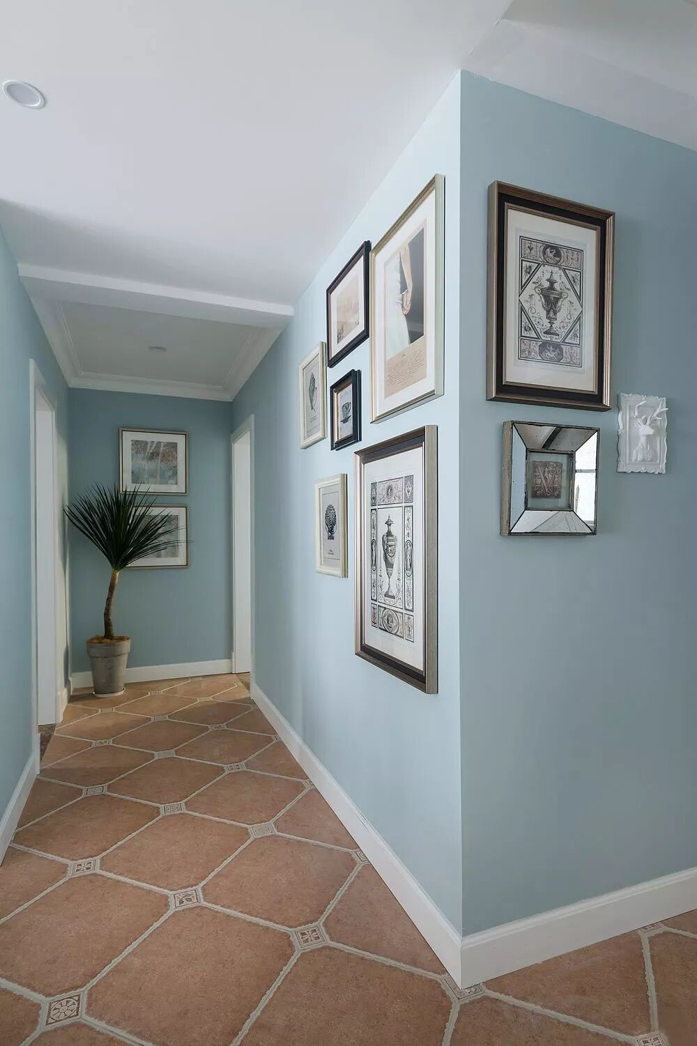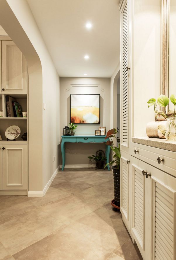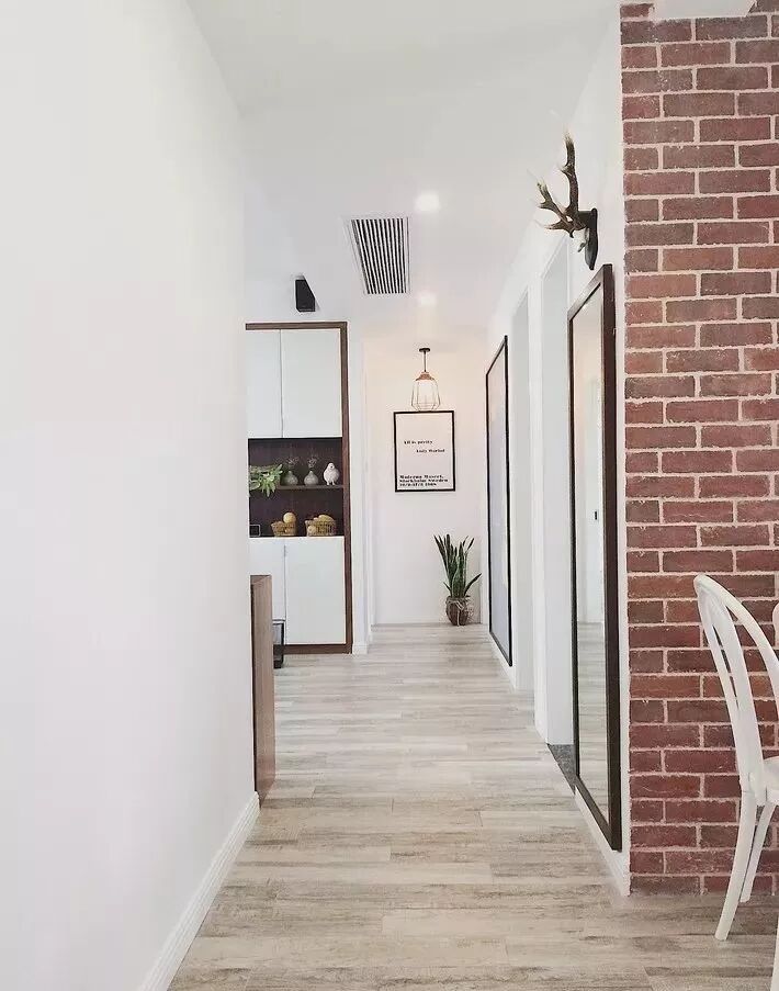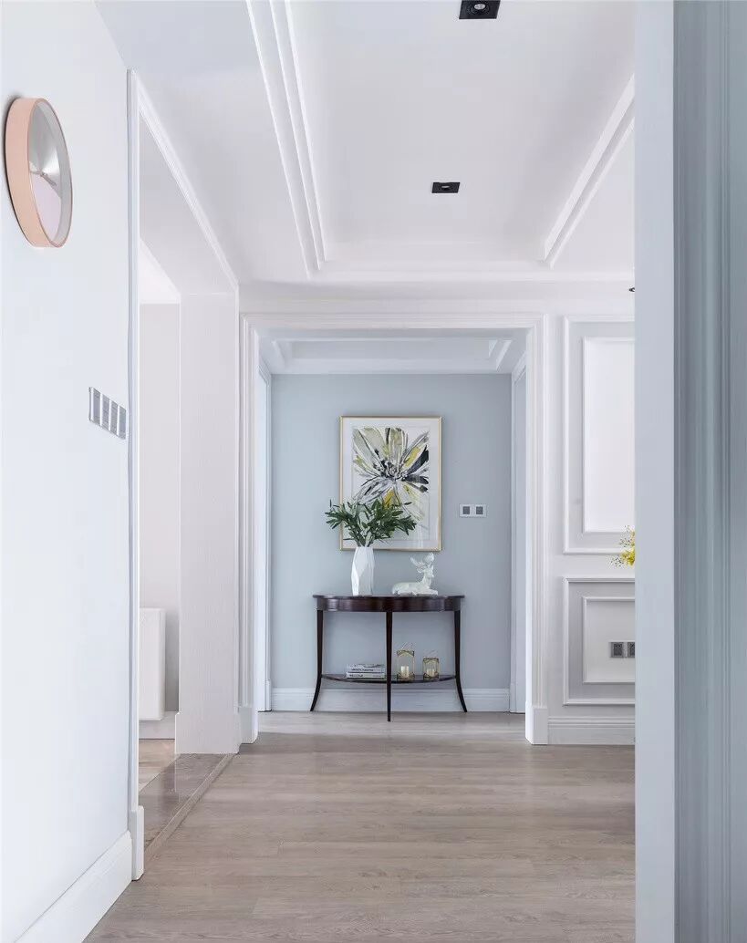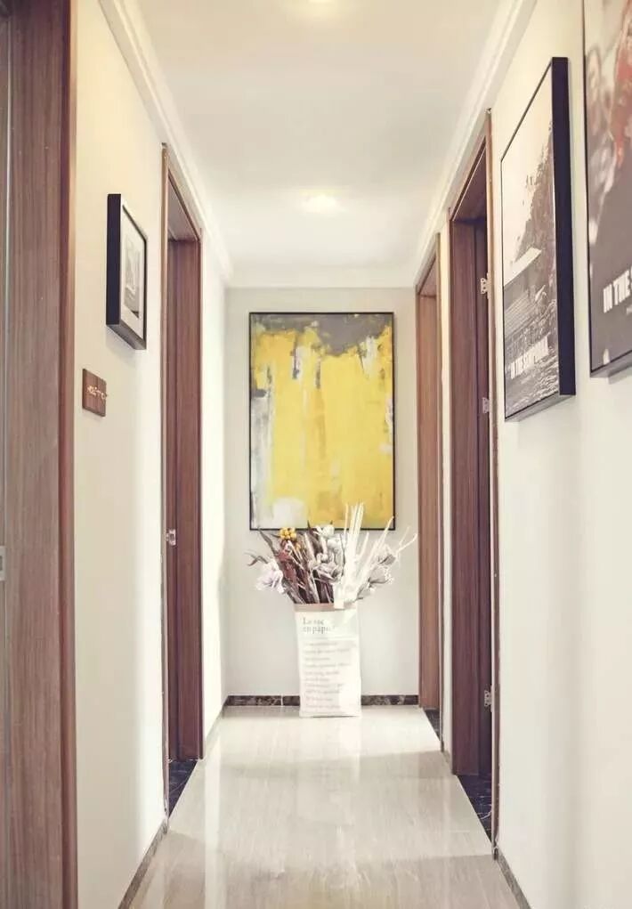 在走廊的尽头,放上装饰画或者桌子等摆件,不仅增强了视觉感,也提升了格调与品位,让空间不再那么死板。