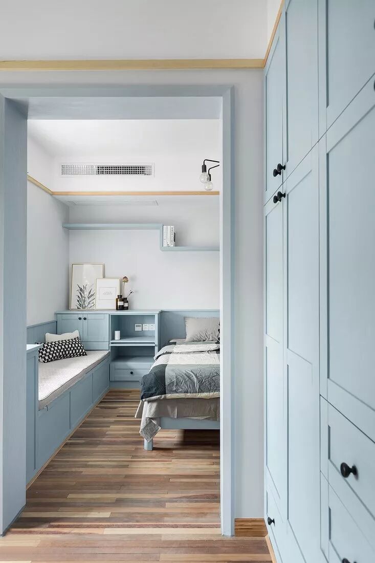 快临近门厅的走廊打造成衣帽间,考虑到出入时的便捷,简单的衣物收纳空间,可以椅座的玄关坐凳,给家人出入带来许多便利。