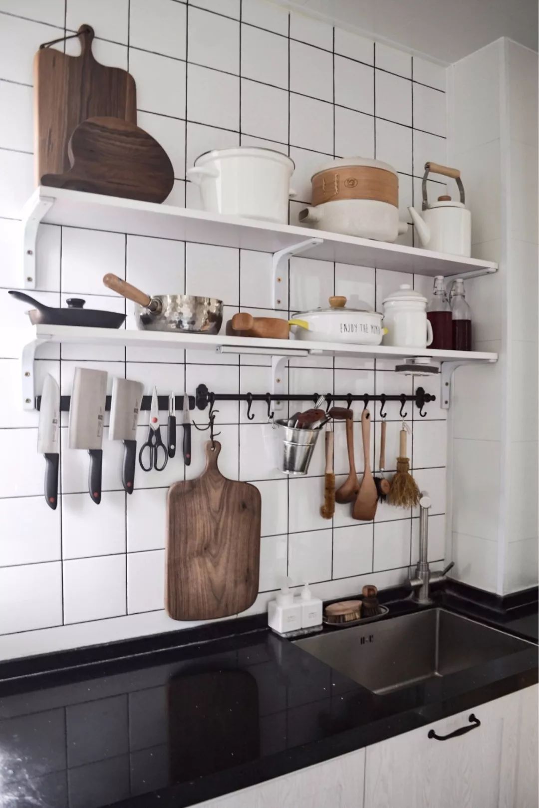 对于刚需性的商品房来说,家里的每个空间几乎都是刚刚好,甚至在一些厨房卫生间等较小的空间,会出现紧凑拘束的情况。遇到这样的情况,原因也是多方面的,一方面是空间面积小,一方面也是空间利用不充分。 相信不少人都会有这样的感受:同样的户型,邻居家的房子怎么进去就感觉那么舒服呢?这主要就是空间规划设计与利用的小技巧了,下面我们就来介绍一个小厨房的利用技巧——墙面收纳!