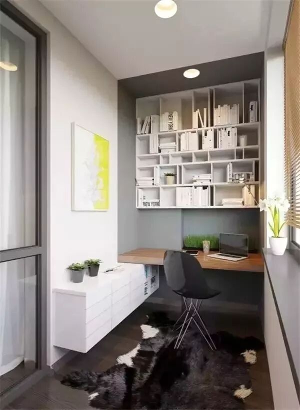 此外,将吊柜应用到玄关、书房、阳台等其他区域,小空间也能大变样,整体看起来清爽整洁、井井有条,取用都很方便。
