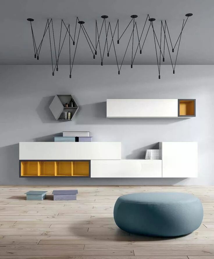 墙面上的吊柜,堪称小户型的“收纳神器”,它的承重能力较好,可以实现垂直收纳,不占用地面空间。而且打扫起来无卫生死角!看起来既创意又美观!