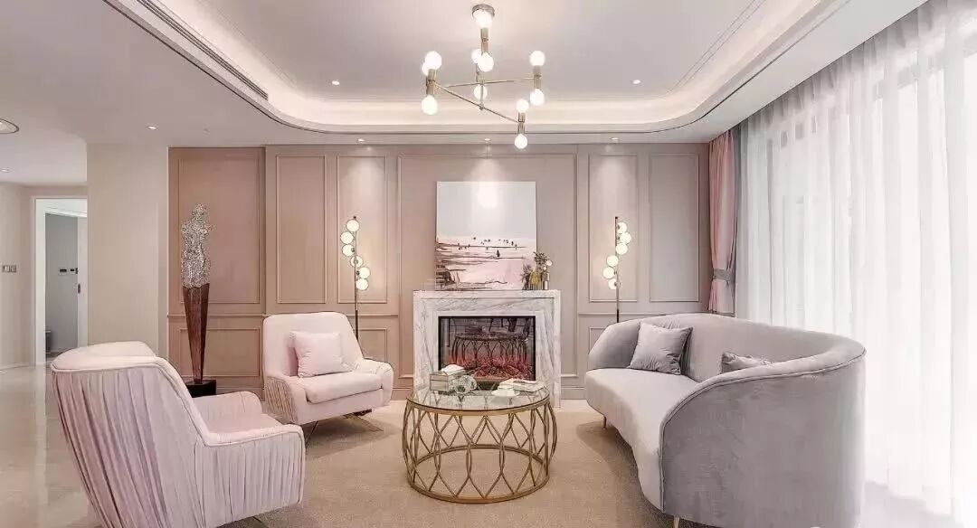▲客厅取消电视的摆放,以装饰画+壁炉代替,精美舒适。