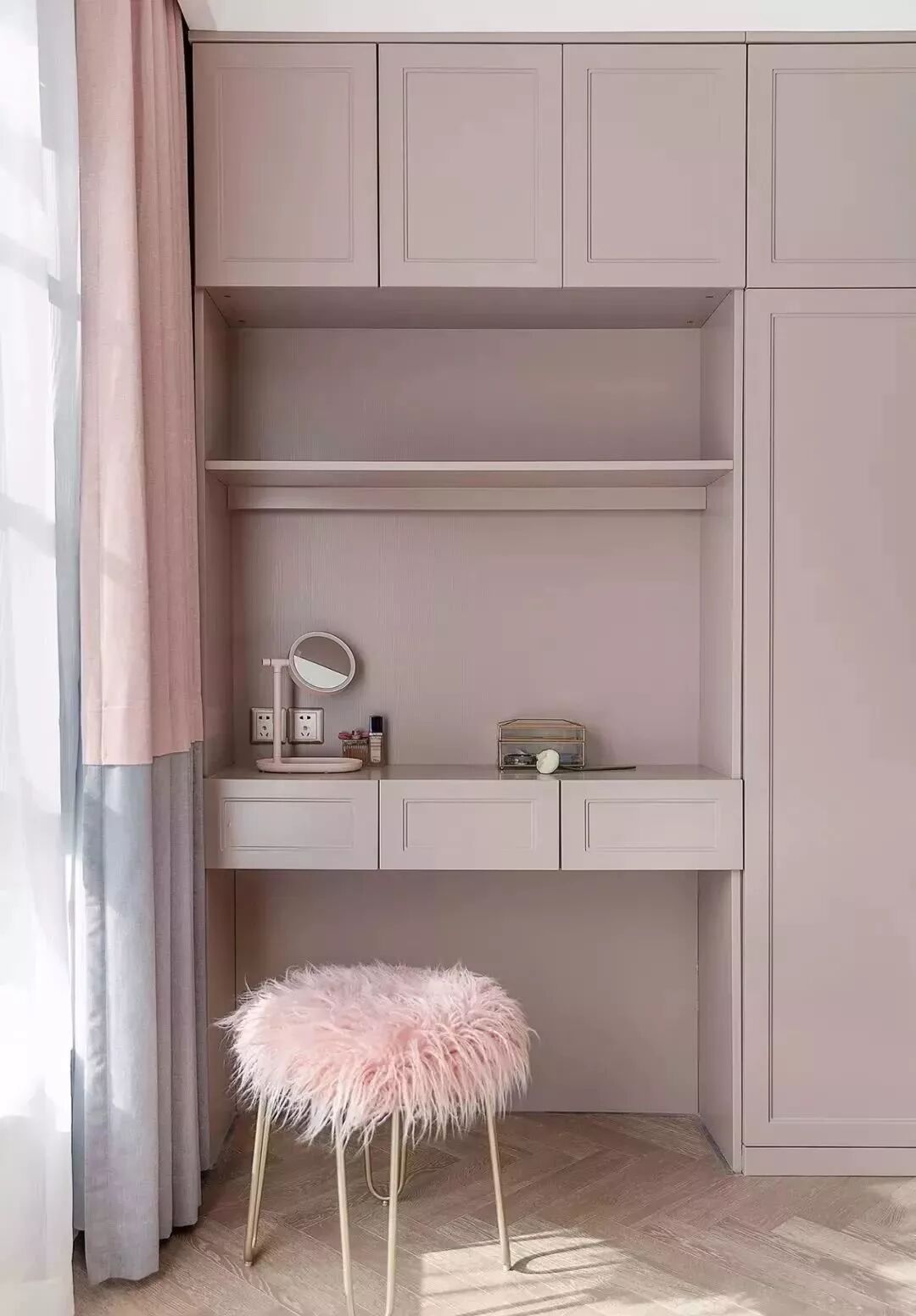 ▲床尾的梳妆区,集成在衣柜中,延续空间整体性。