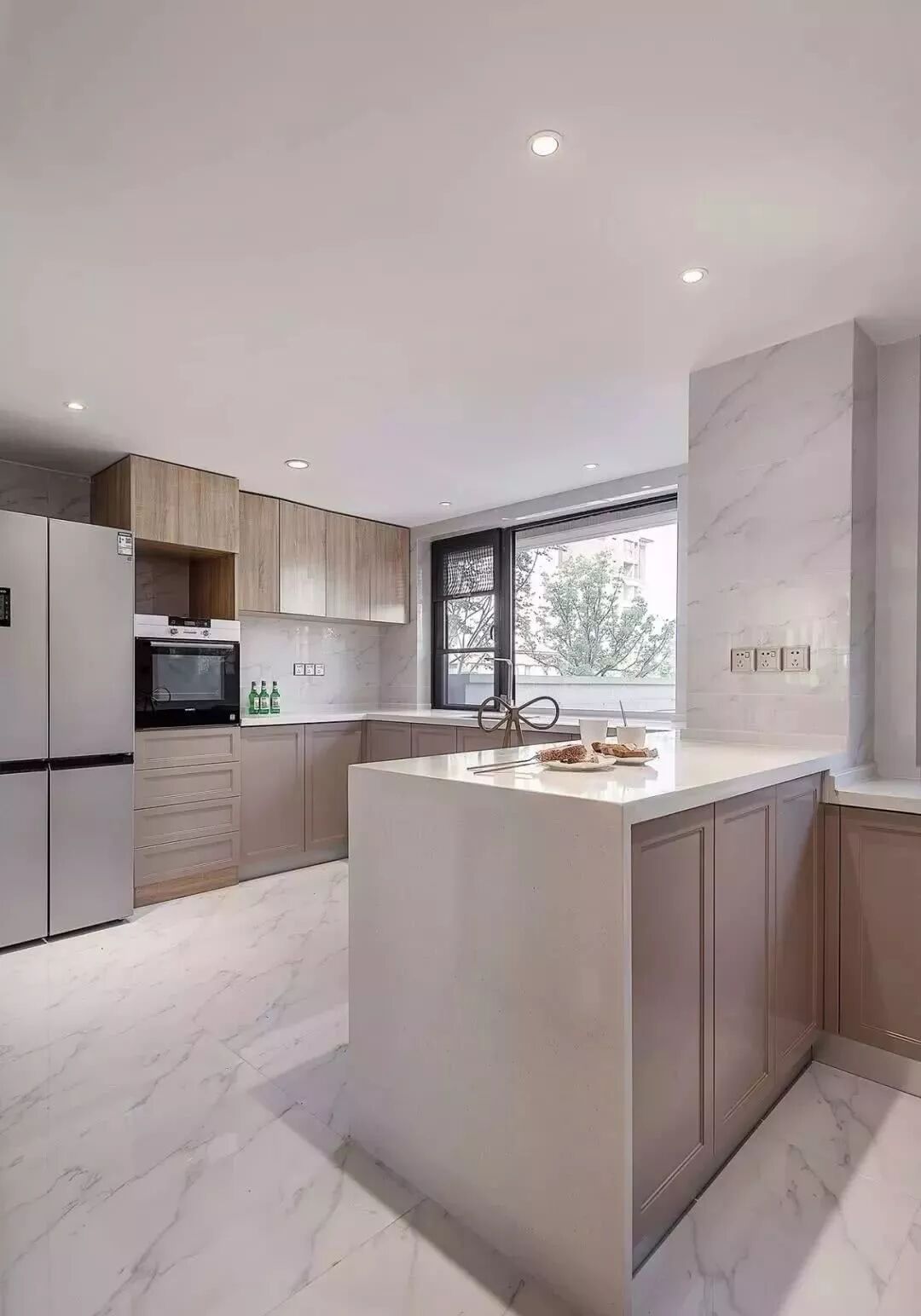 ▲厨房利用岛台分割出中西厨,岛台也变成了吃早餐、喝下午茶的地方。