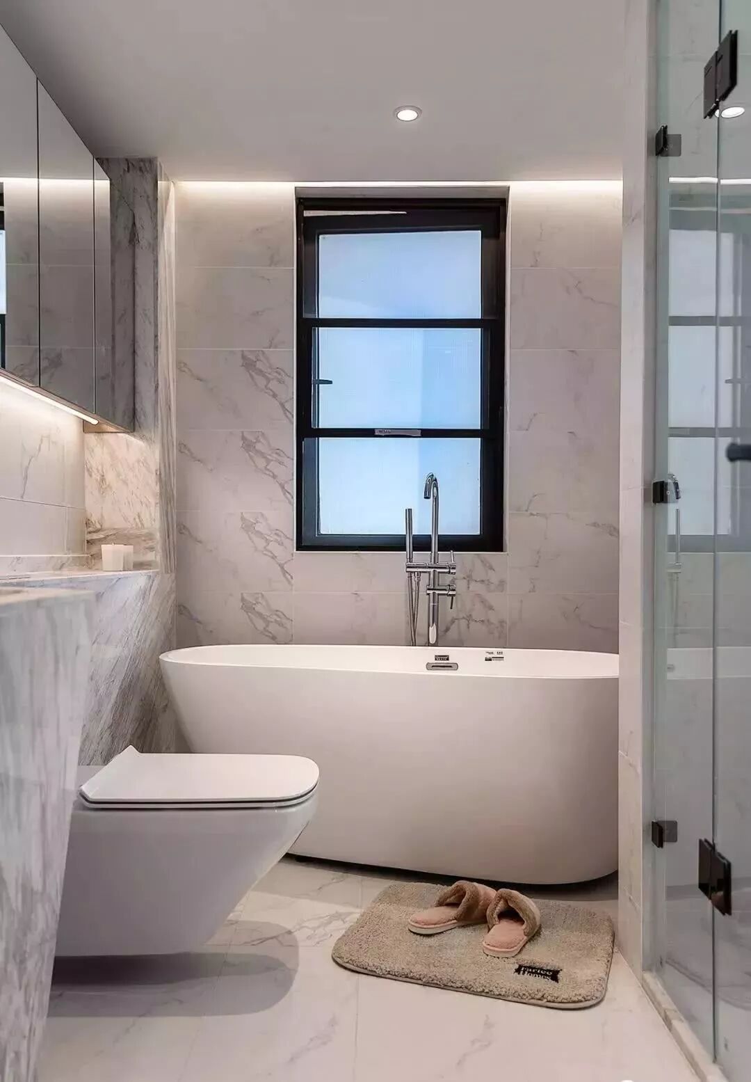 ▲柔光的砖面和石纹,搭配温暖的灯光,让卫生间看起来干净明亮。
