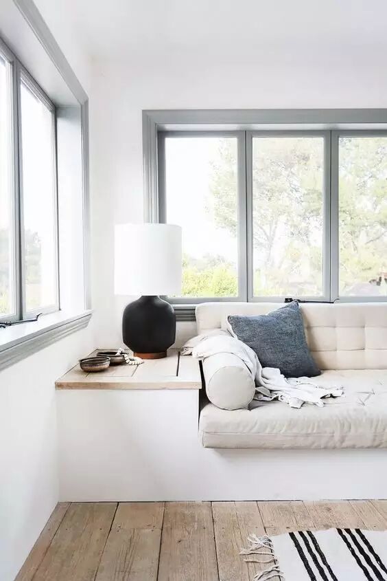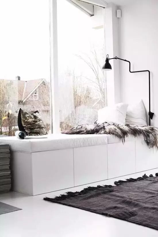 只要你有窗户,可以拥有飘窗级的享受。自己定制柜子和垫子,加几个支点和飘窗垫,一块板也能成为小天地。