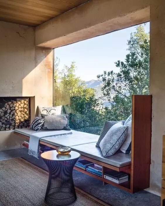 ▲没有天然飘窗,也能用一个定制的柜子+定制坐垫自己打造一个。