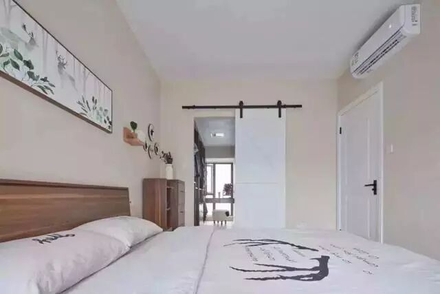 ▲白色谷仓门是步入式衣帽间的入口。