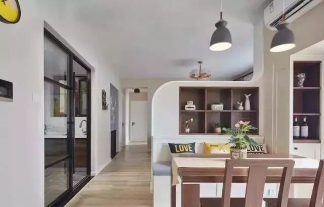 ▲餐厅与客厅之间用弧度墙做隔断。