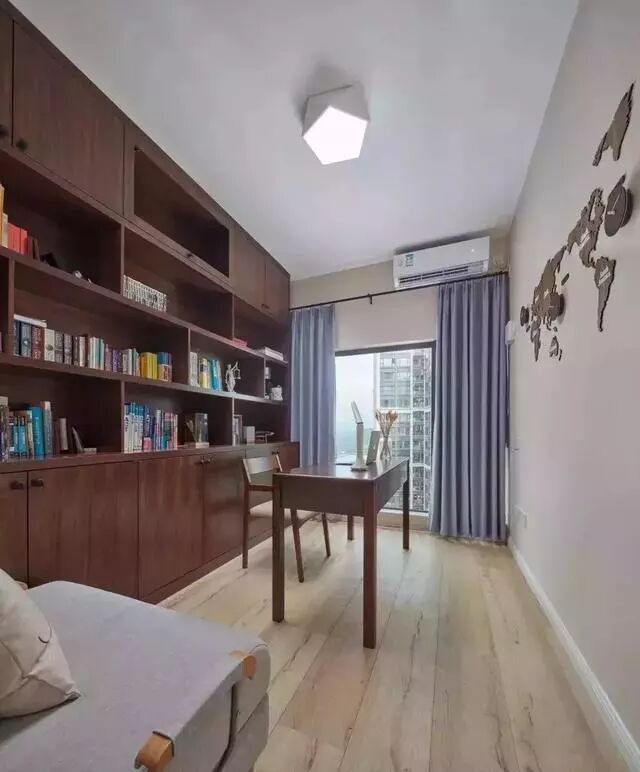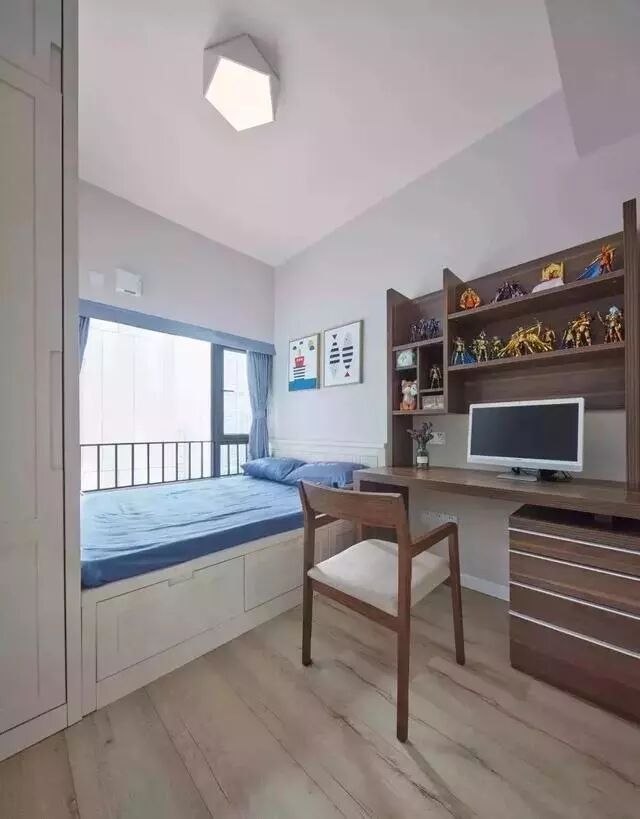 ▲ 次卧安装榻榻米组合柜,让小空间在兼具储物、工作、休息等功能的同时,不显压抑、狭小。