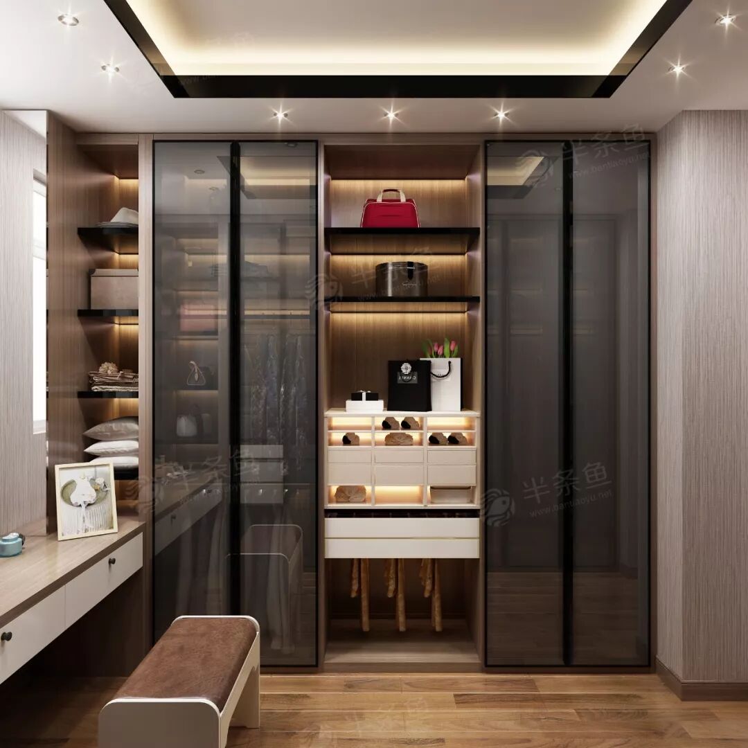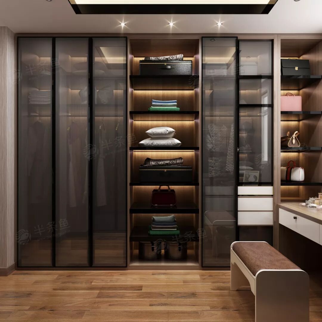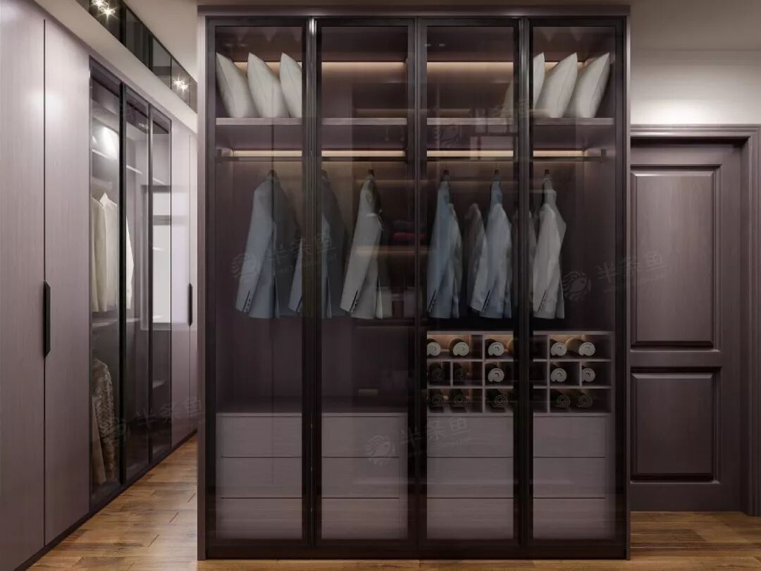玻璃外观和鱼模网模型的五金,都已经很全面的展示了衣柜所需的内饰。很多人都认为裤架很鸡肋,但是这种双层裤架真的储物翻倍。柜体超过900mm,安装三个纵拉裤架也没有问题。