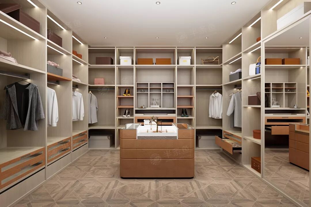 对于大小户型来说,挂衣区虽然很奢侈,但真的是刚需。挂衣区最好分为长衣区和短衣区,短衣区下方设计裤架,预留长衣区面积就算冬天到了也可以挂风衣或者羽绒服。