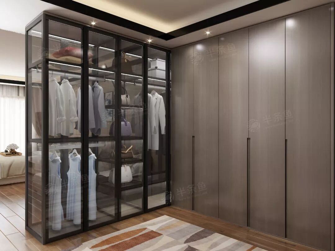玻璃门的衣柜外观收到了更多用户追捧,这不但时尚美观还能储物一目了然。双面衣柜将刚需或不常用的衣物都可以很好的区分,转角柜的弧度处理也十分安全。