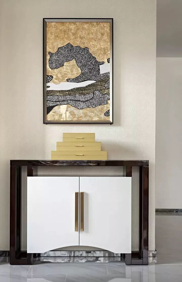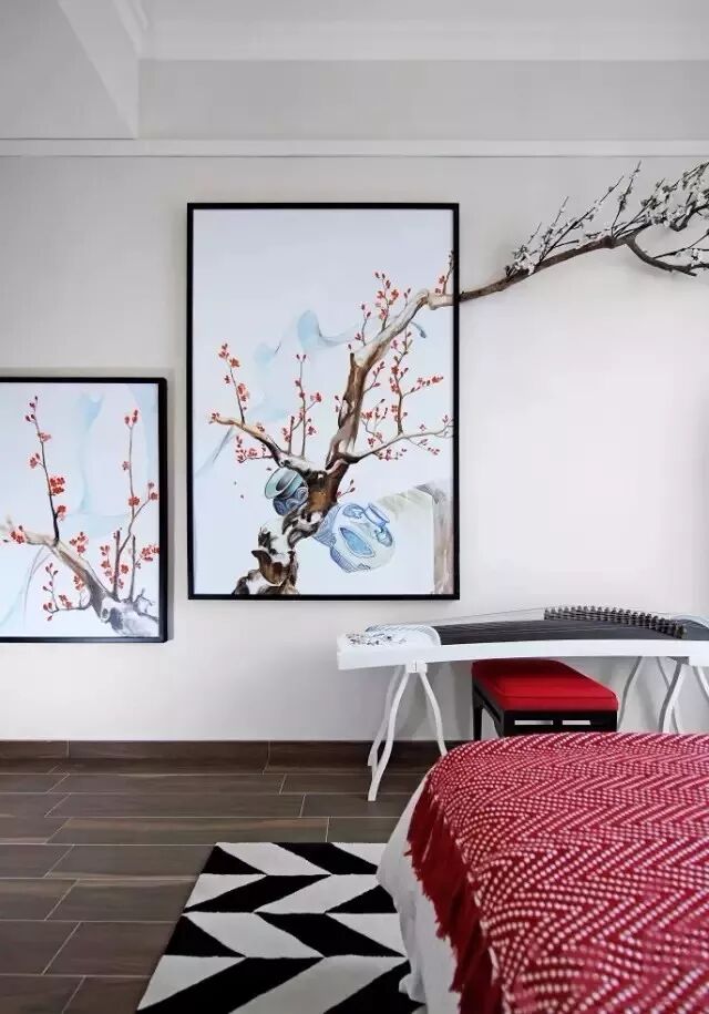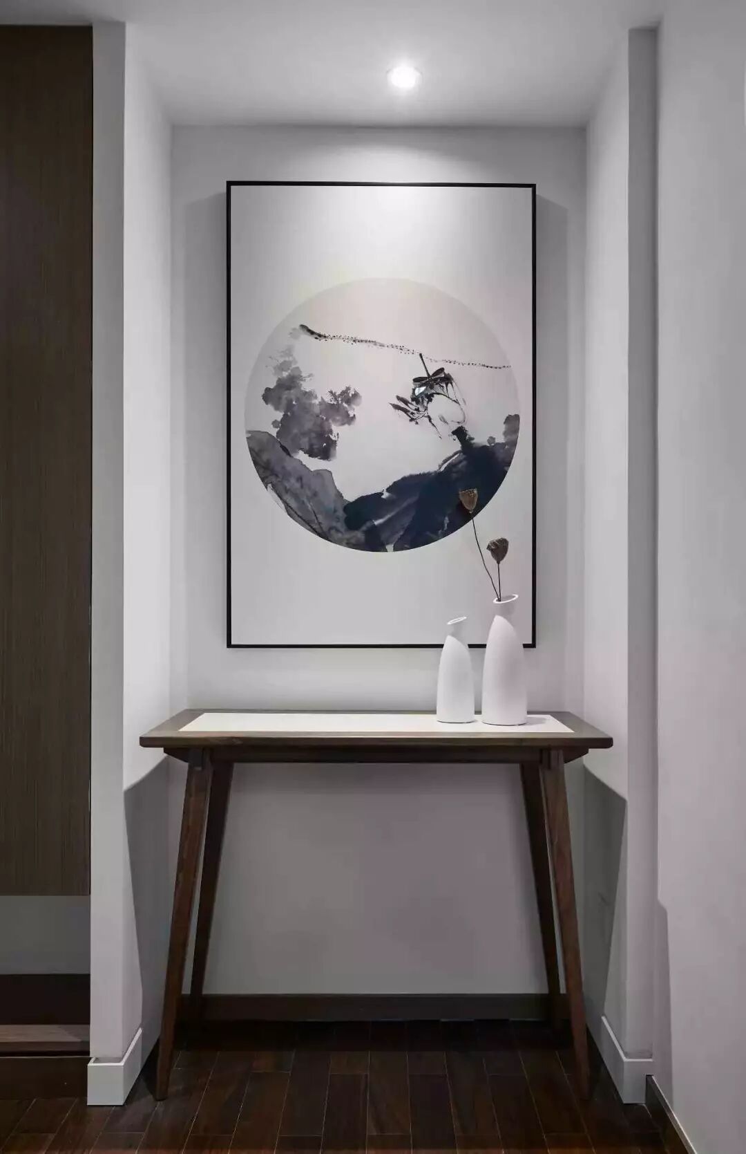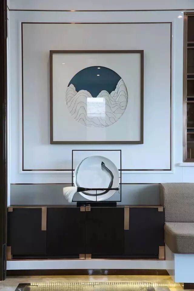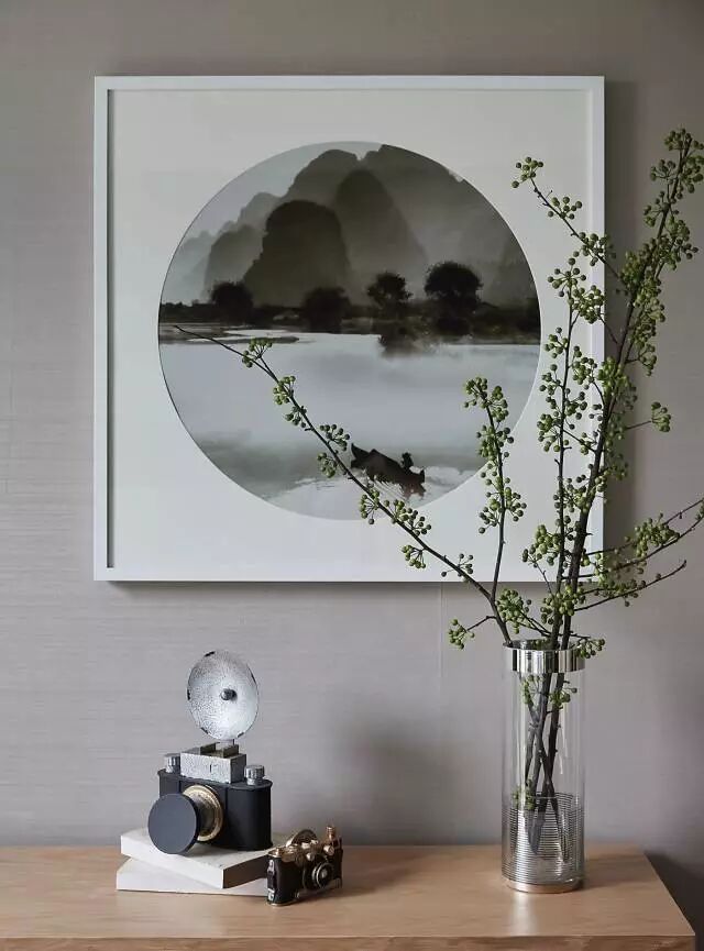 相比大面积的背景墙,小巧简单富有韵味的挂画,在家装环节里也会起到与众不同的视觉效果,或清雅或禅意的色调丝丝点缀室内空间,提升了家居的装饰品味,彰显出高雅生活情趣,从而成为整个空间的点睛之笔。