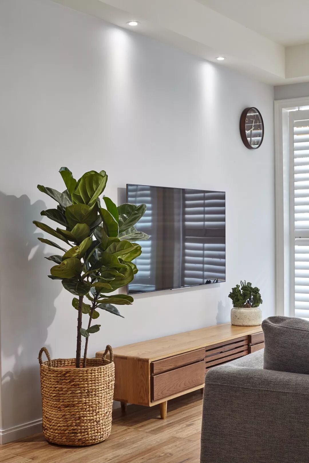 百叶窗若隐若现地透着一丝丝的光线,让客厅的层次感更加丰富而又清新舒适。