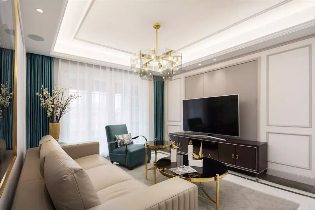 ▲ 高格调的古典绿窗帘,搭配经典的吊顶造型,一气呵成,增加了空间的活力。