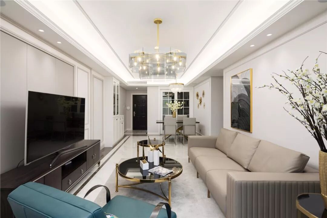 ▲ 在空间布局上,客餐厅因为吊顶造型及地砖搭配让整体达到统一,柔和淡雅的色调也让整个空间趋于舒适平静。