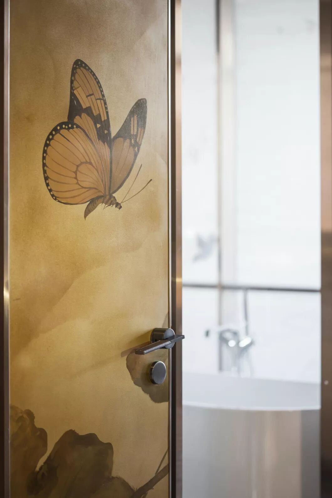 花卉艺术含蓄却富有情趣,完美将情与景,心与物交融在一起,体现自然与人以及环境的对话关系,延续玄关过厅的漆画工艺,内容上植入蝴蝶花卉等元素与花房空间概念相呼应。地毯选用带有自然元素的图案,使空间更加生动且富有自然的艺术感染力同时也使整个空间更加连贯与整体。