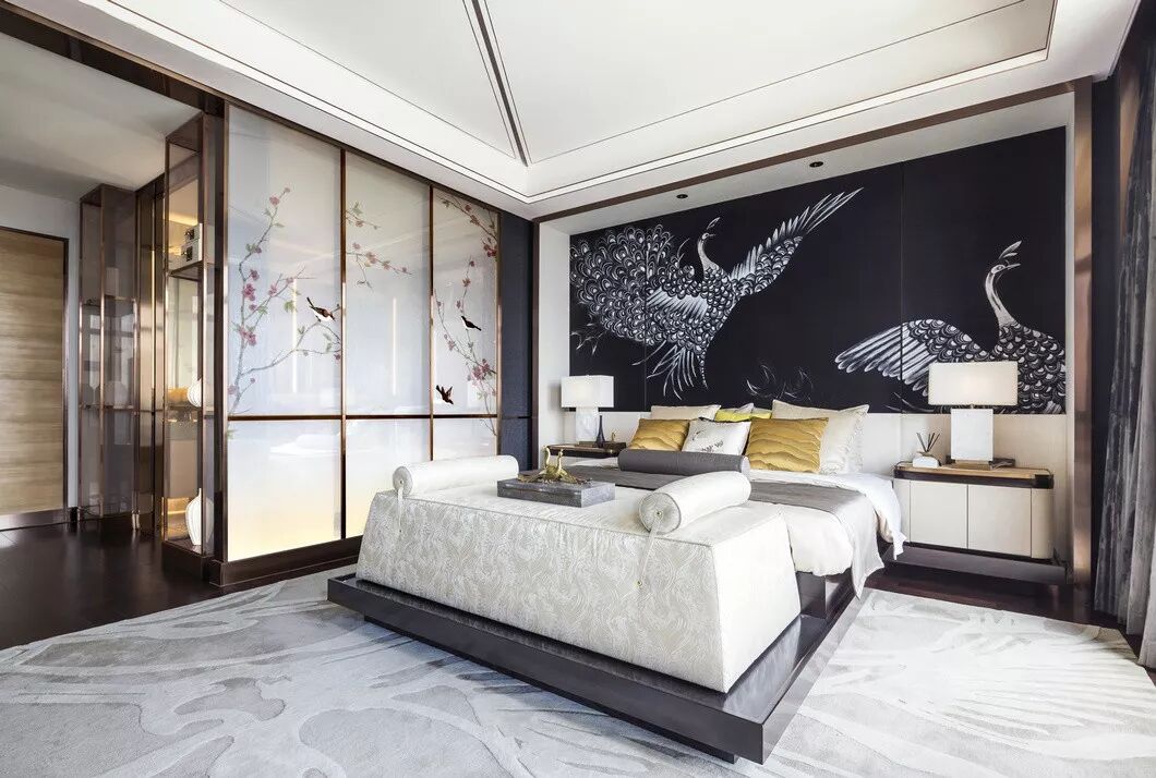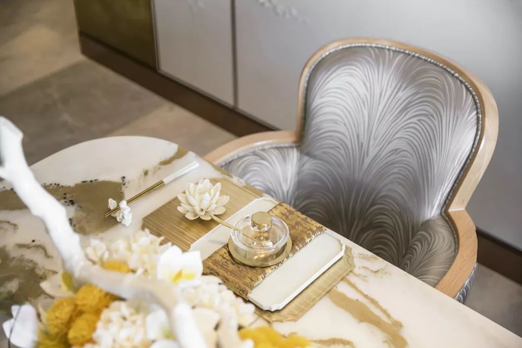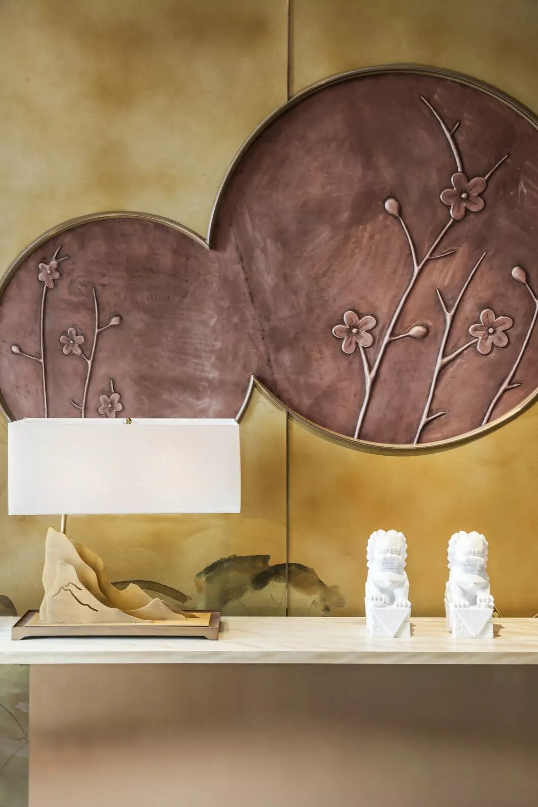 运用多种传统工艺:大漆画、刺绣、铜刻等结合现代的设计手法创造出丰富的场景,营造如繁花似锦的都市中人文居所,让心灵徜徉在繁华里,演绎一场生活方式的艺术之旅。